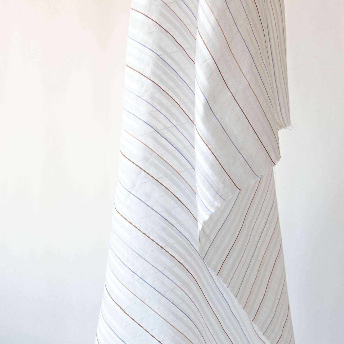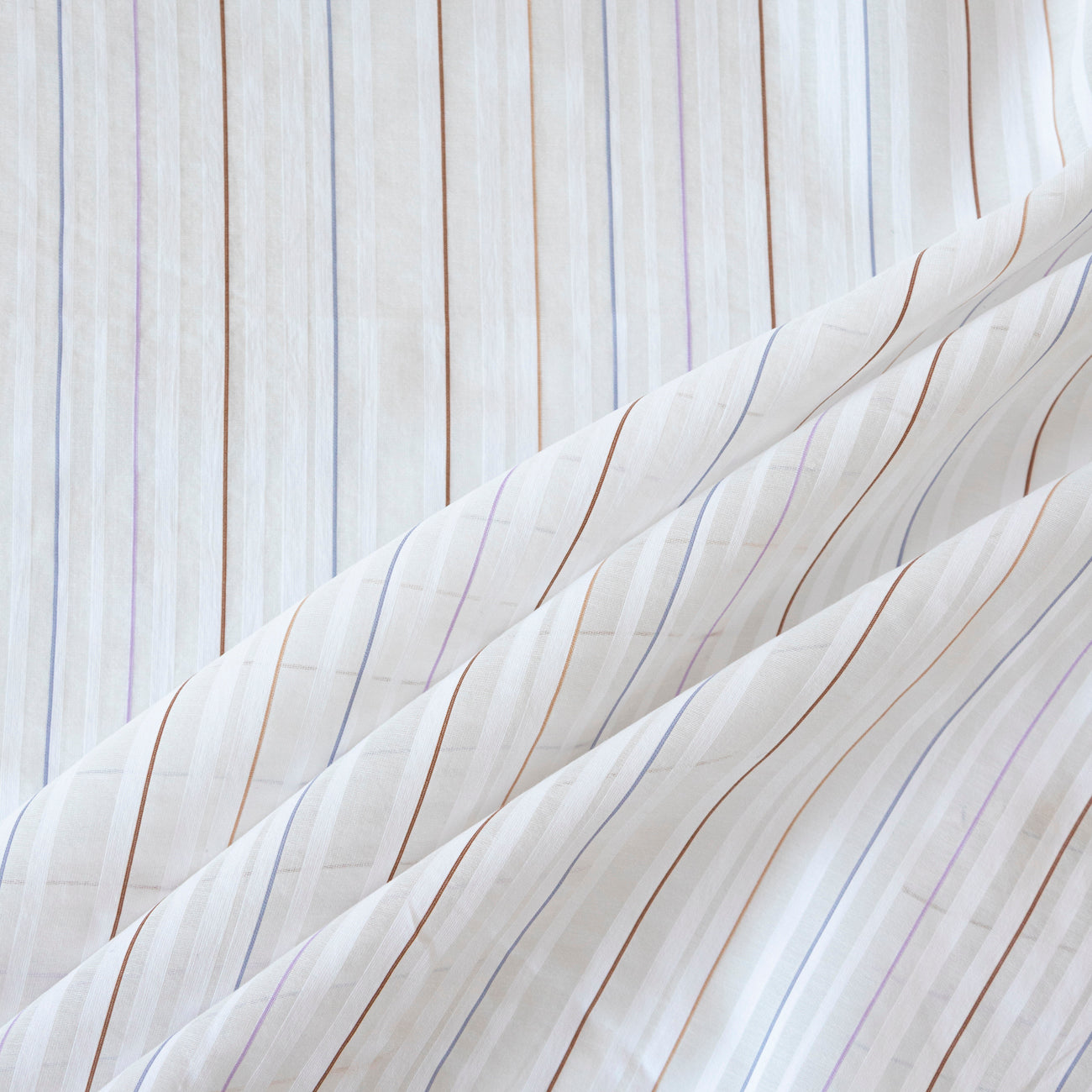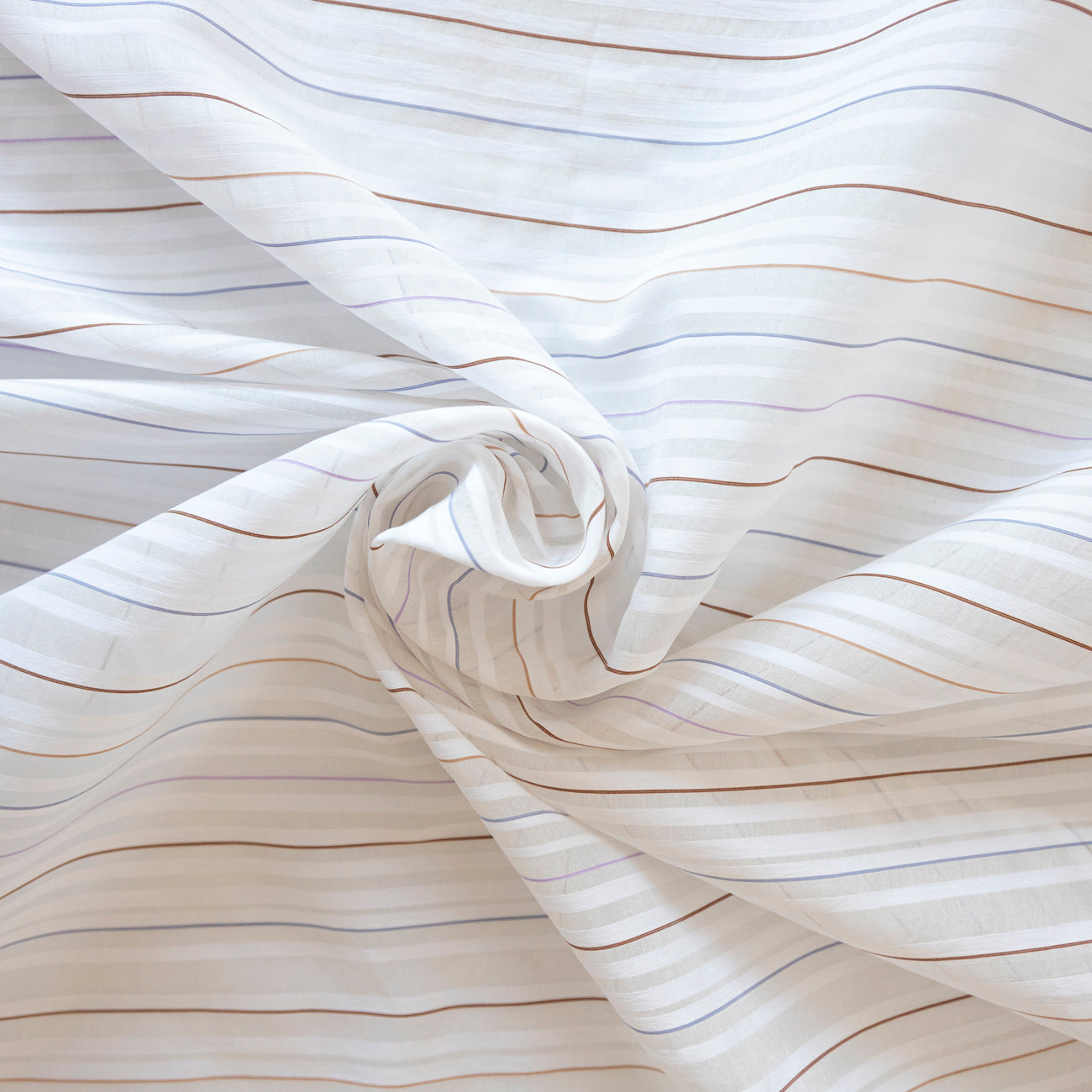 Caracteristici Bumbac alb cu dungi maro si bleu: