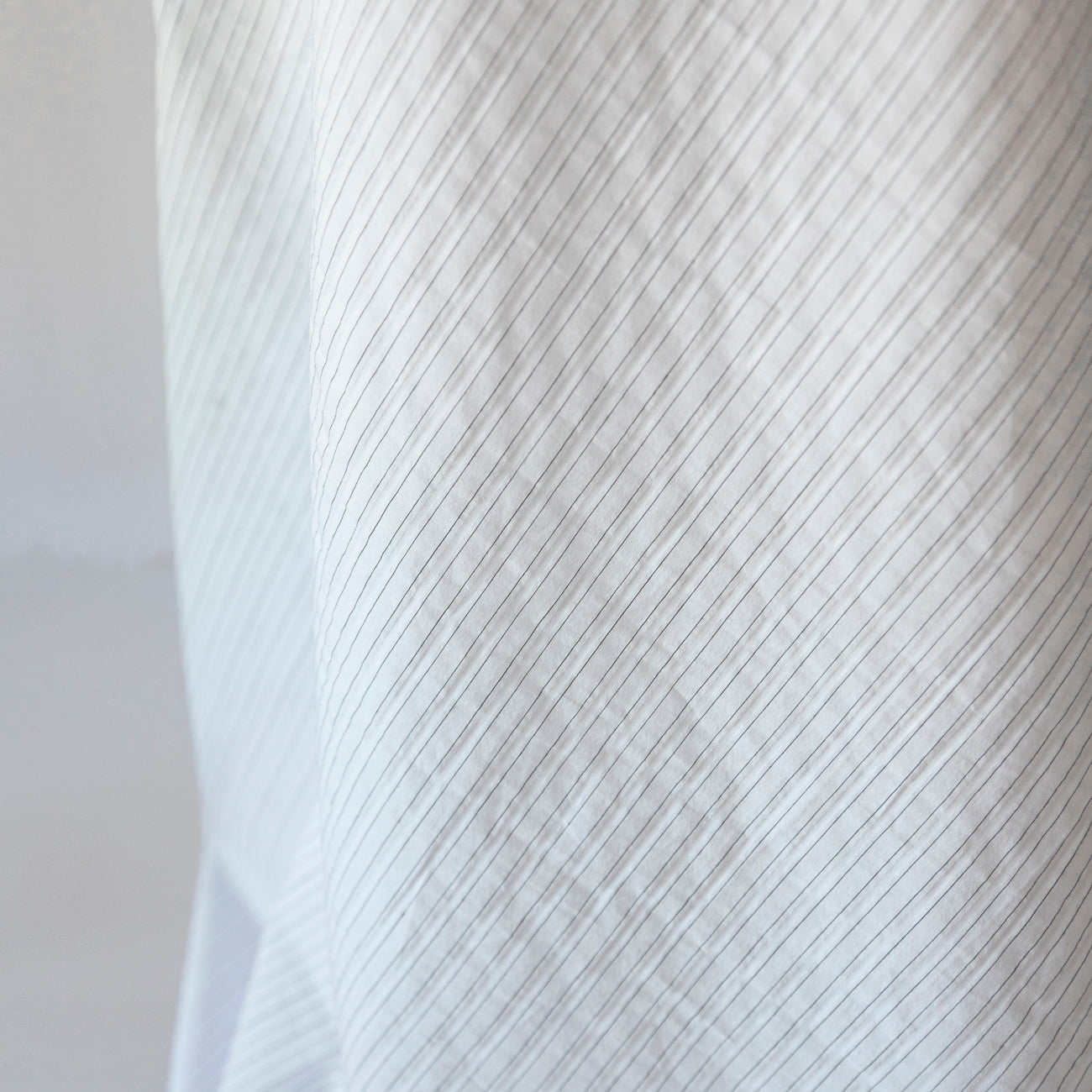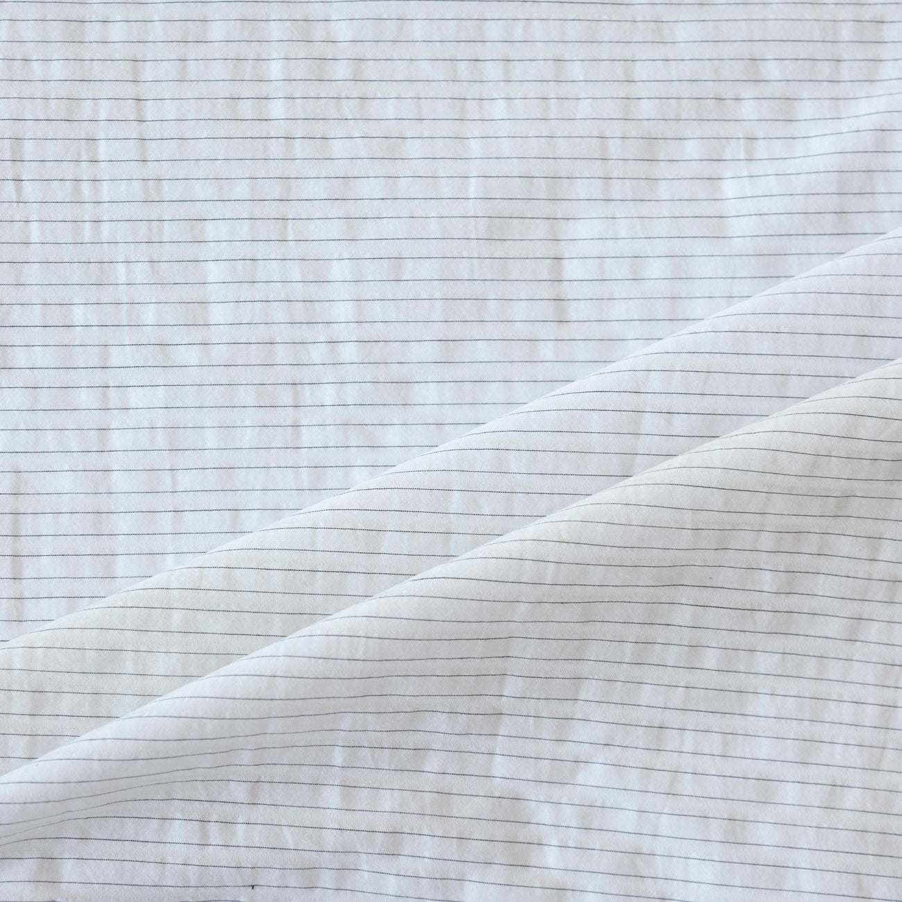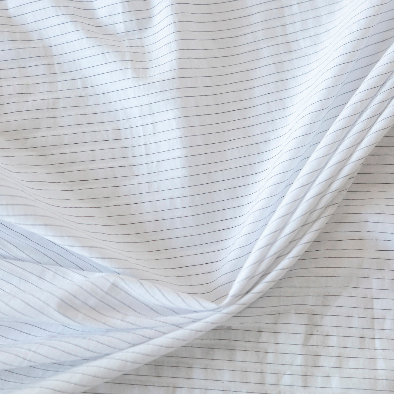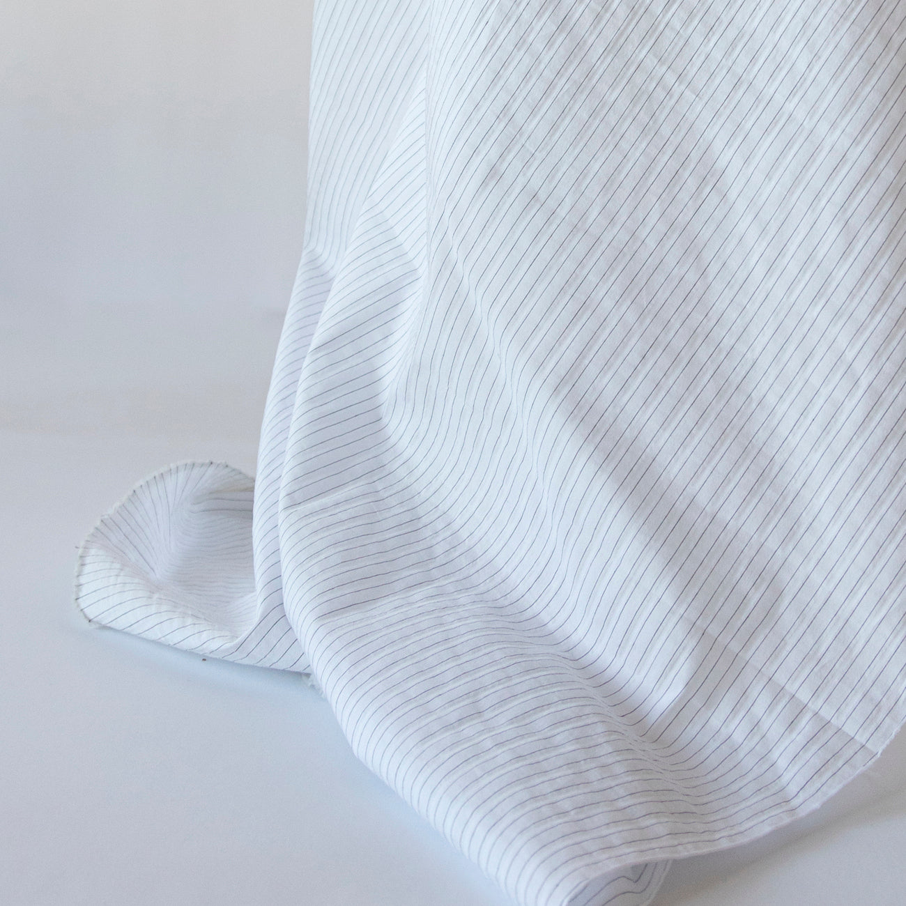 Bumbacul alb cu dungi negre este moale, ușor elastic și plăcut la atingere, oferind confort sporit în orice sezon. Materialul combină bumbacul natural cu fibre sintetice, conferindu-i rezistență și durabilitate în timp, fără să se deformeze sau să se scamoseze. Densitatea optimă îi asigură stabilitate, iar dungile negre pe fond alb adaugă un aspect elegant și versatil.