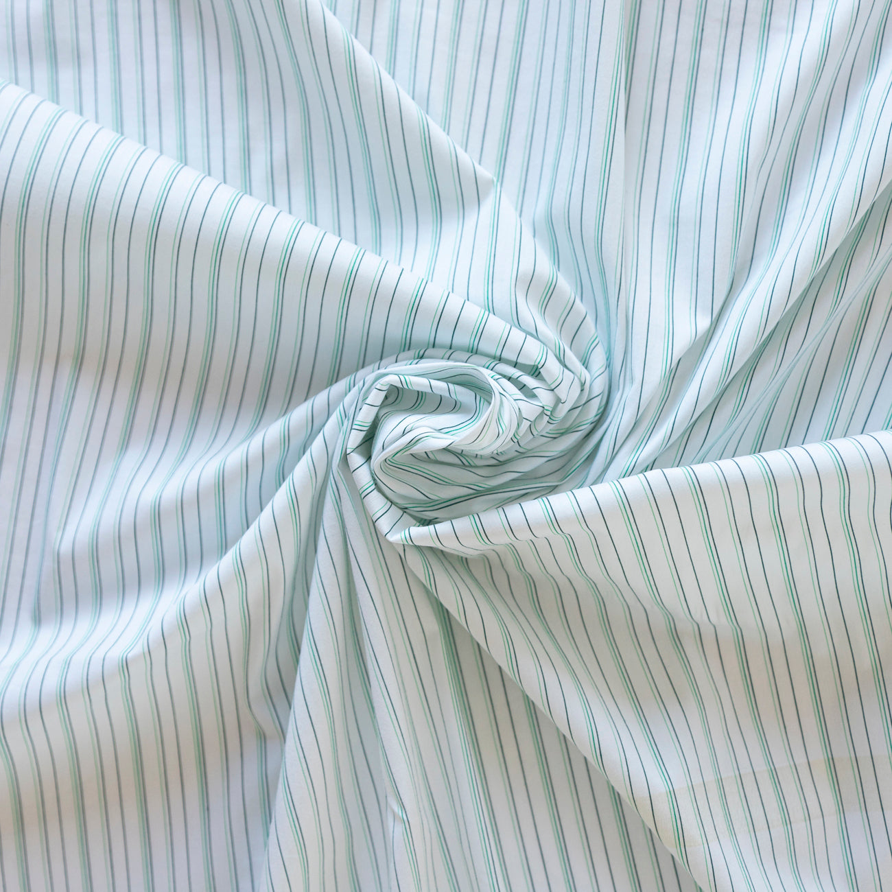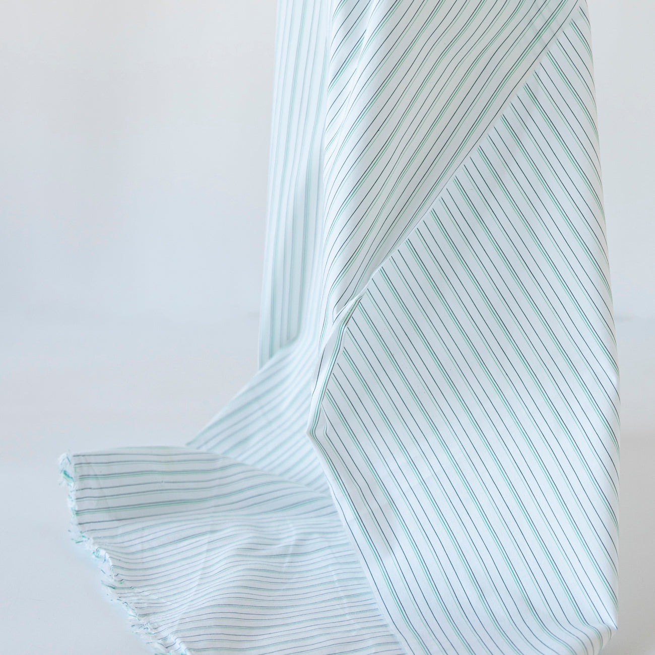 Tesătura din bumbac alb cu dungi verzi este elastică, plăcută la atingere și ușor de întreținut. Amestecul de bumbac cu fibre sintetice permite pielii să respire, absoarbe umezeala și oferă în același timp o bună rezistență și durabilitate. Materialul își păstrează forma, nu se scămoșează și se adaptează ușor la diverse tipuri de croieli.