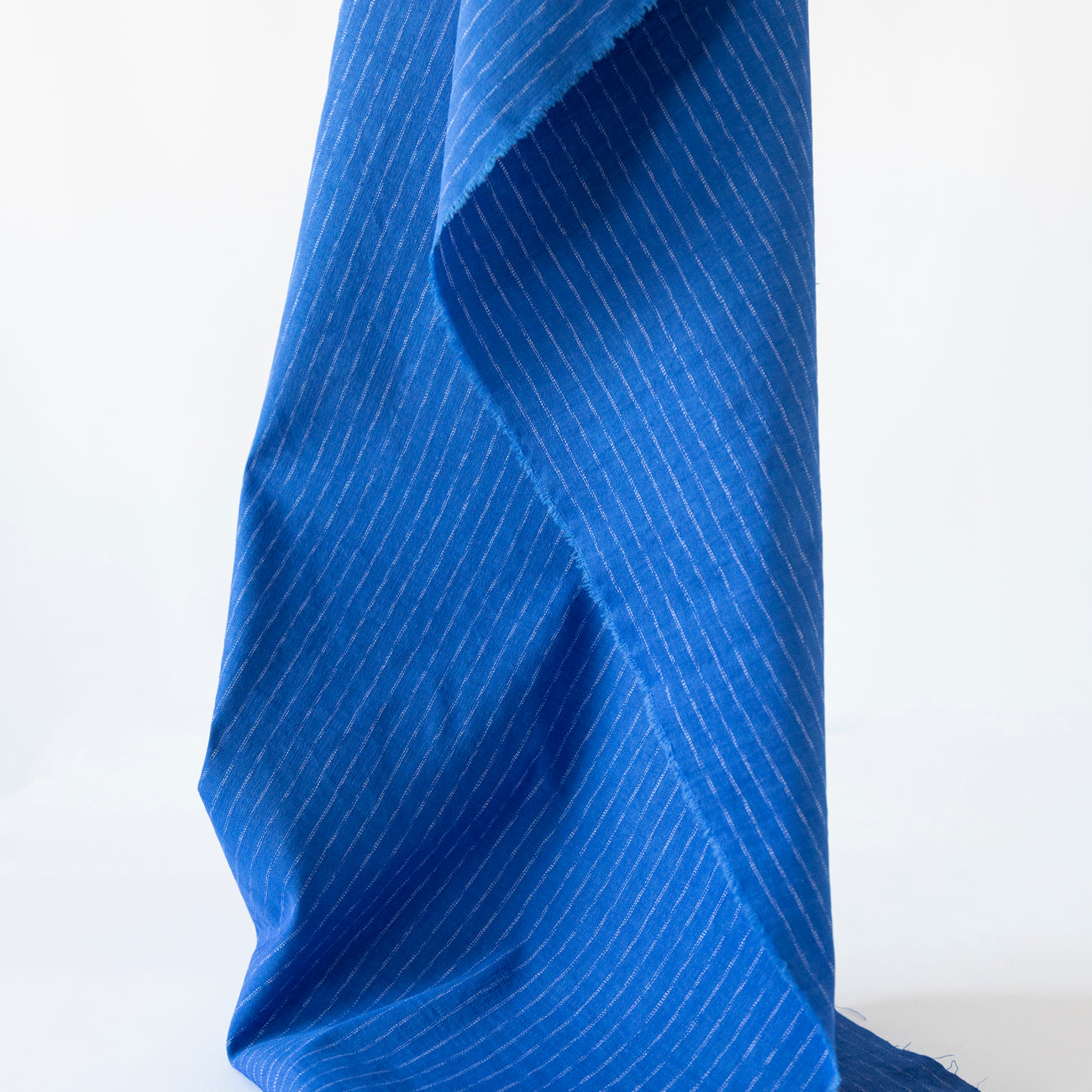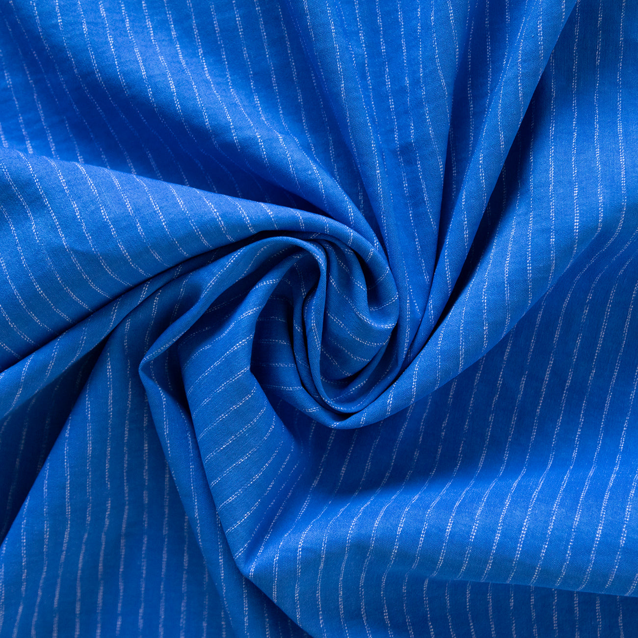 Caracteristici Bumbac albastru elastic cu dungi albe: