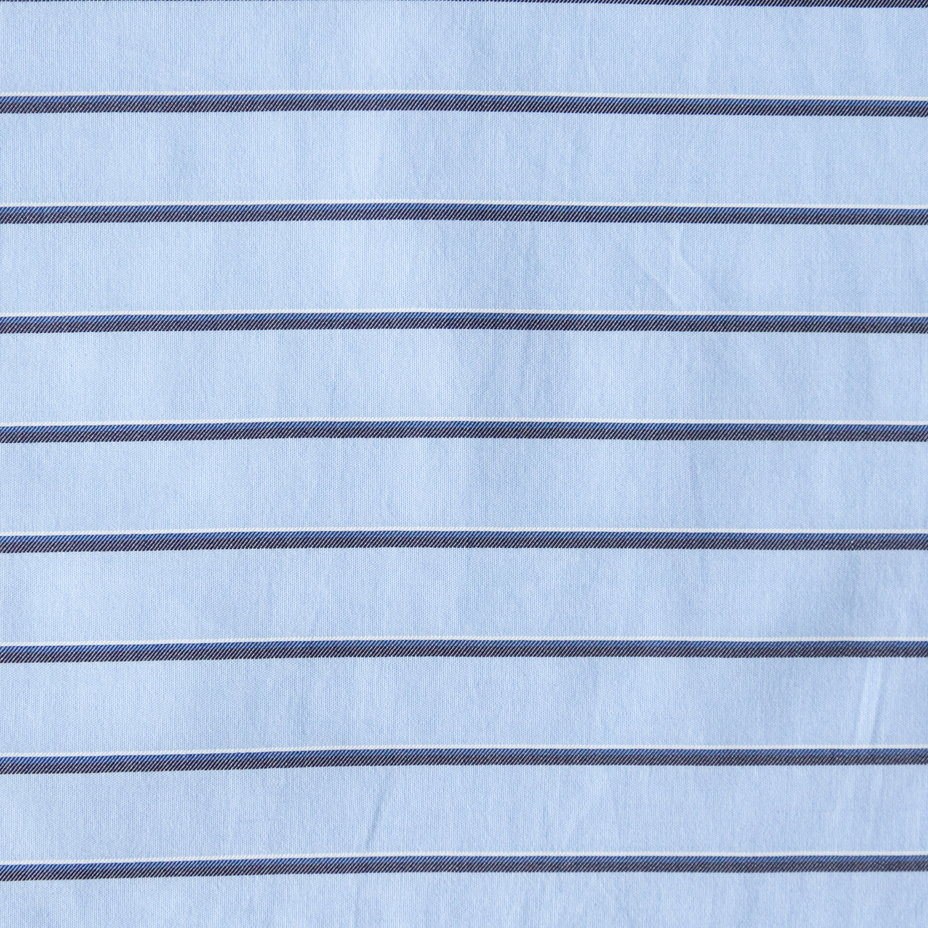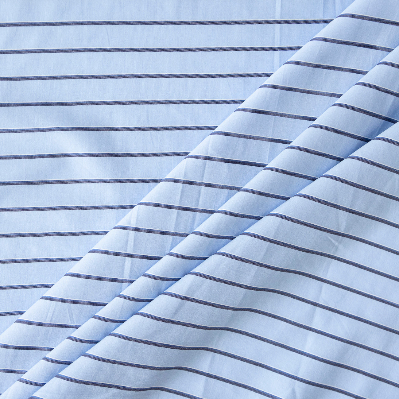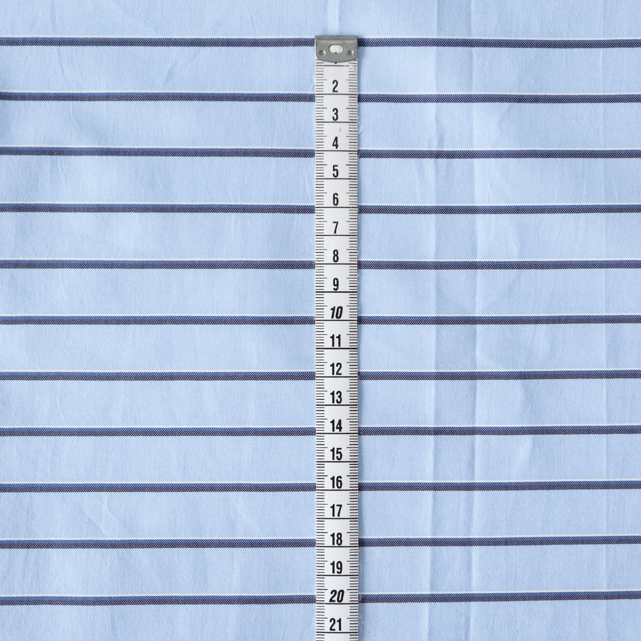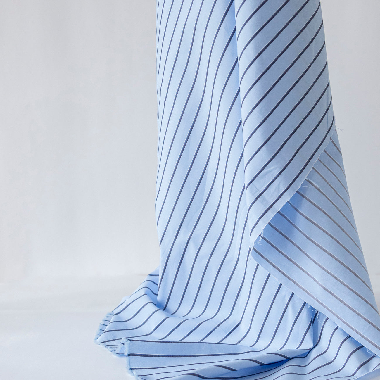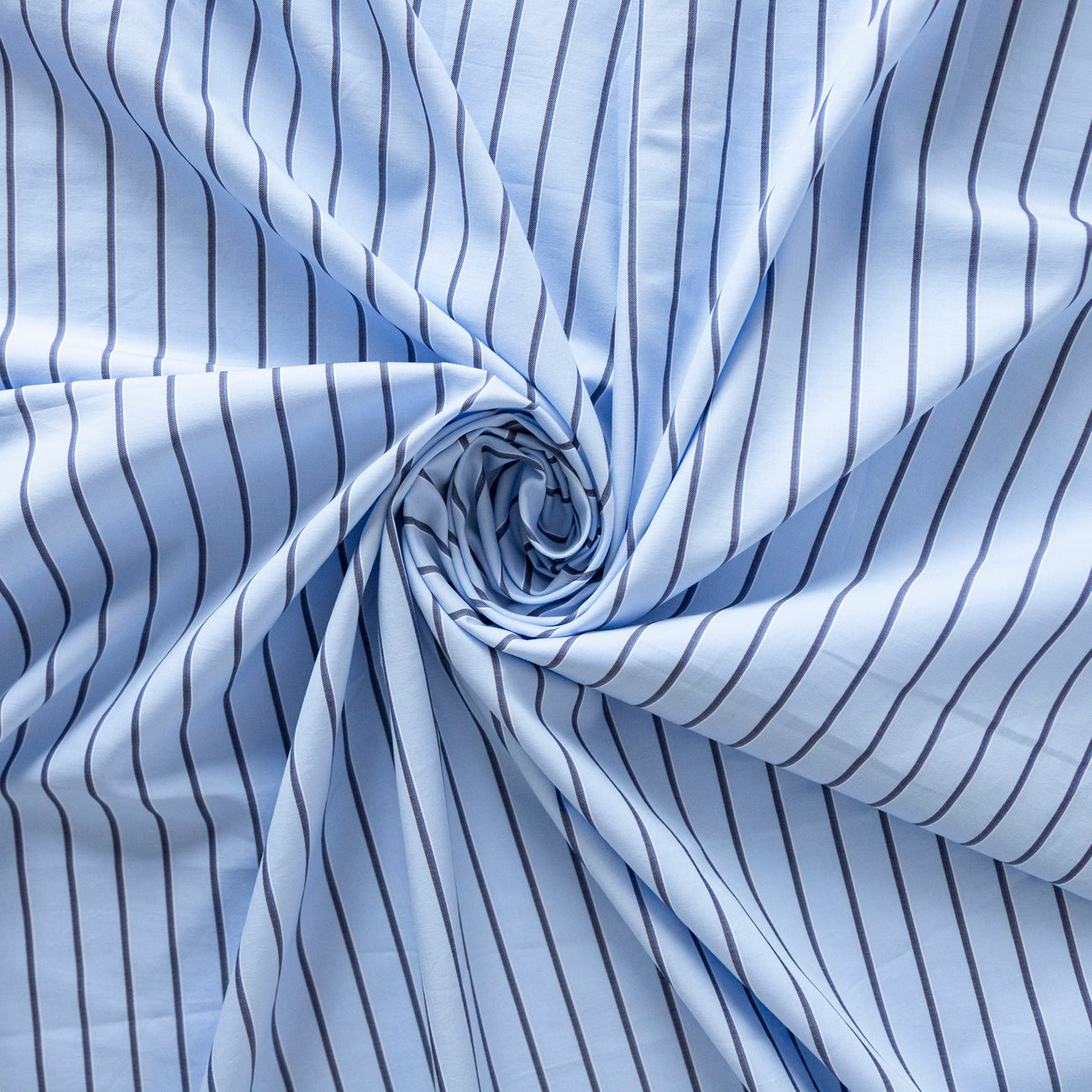 Bumbac bleu cu dungi este o țesătură plăcută la atingere, fără elasticitate, care combină naturalul bumbacului cu rezistența unei fibre sintetice. Materialul lasă pielea să respire și absoarbe umezeala, oferind confort pe tot parcursul zilei. Densitatea mare îi conferă rezistență și durabilitate în timp, păstrându-și forma și aspectul îngrijit chiar și după multiple spălări.