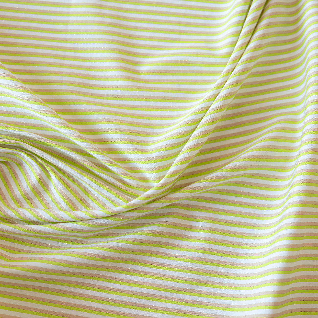 Caracteristici Bumbac cu dungi multicolore si fir metalic:
