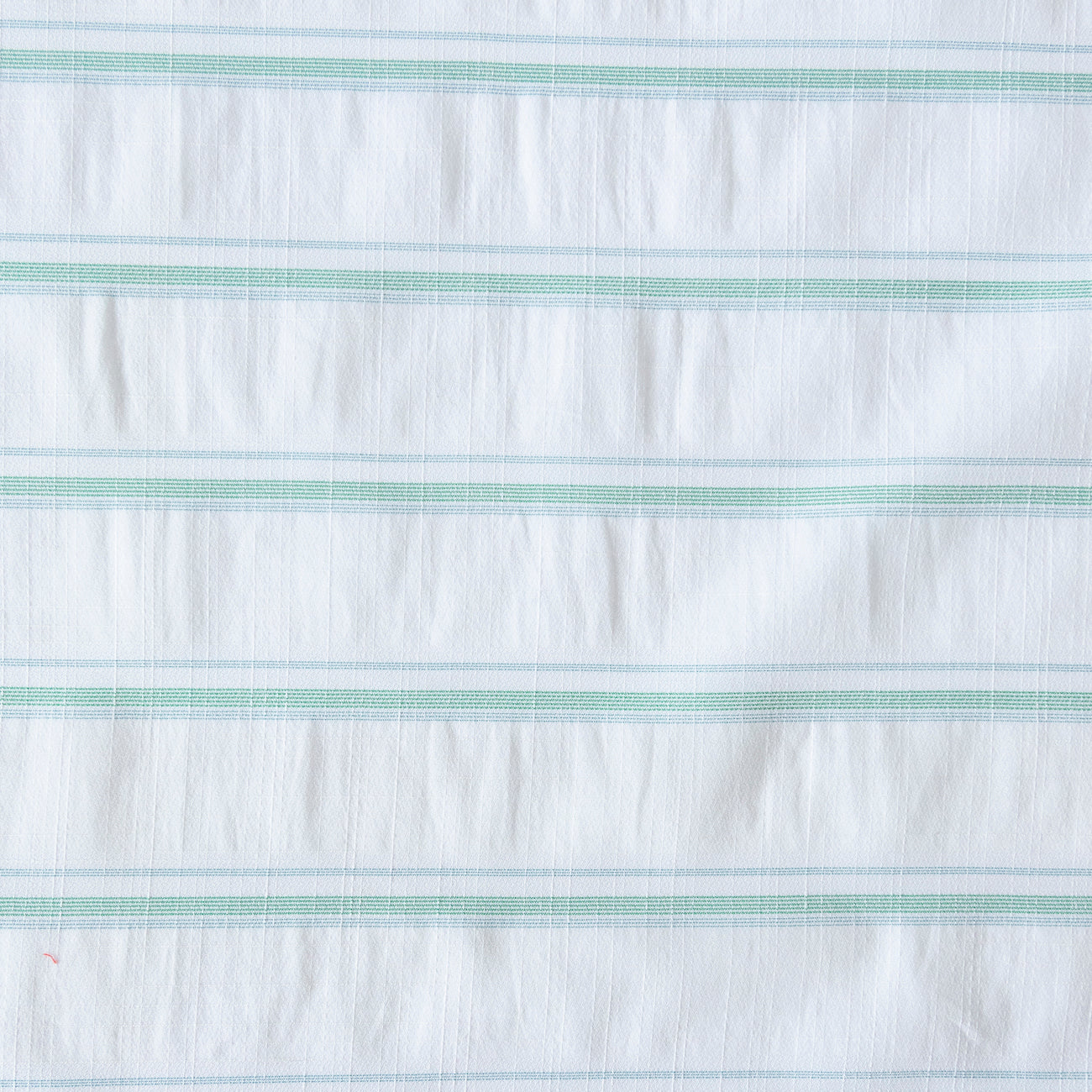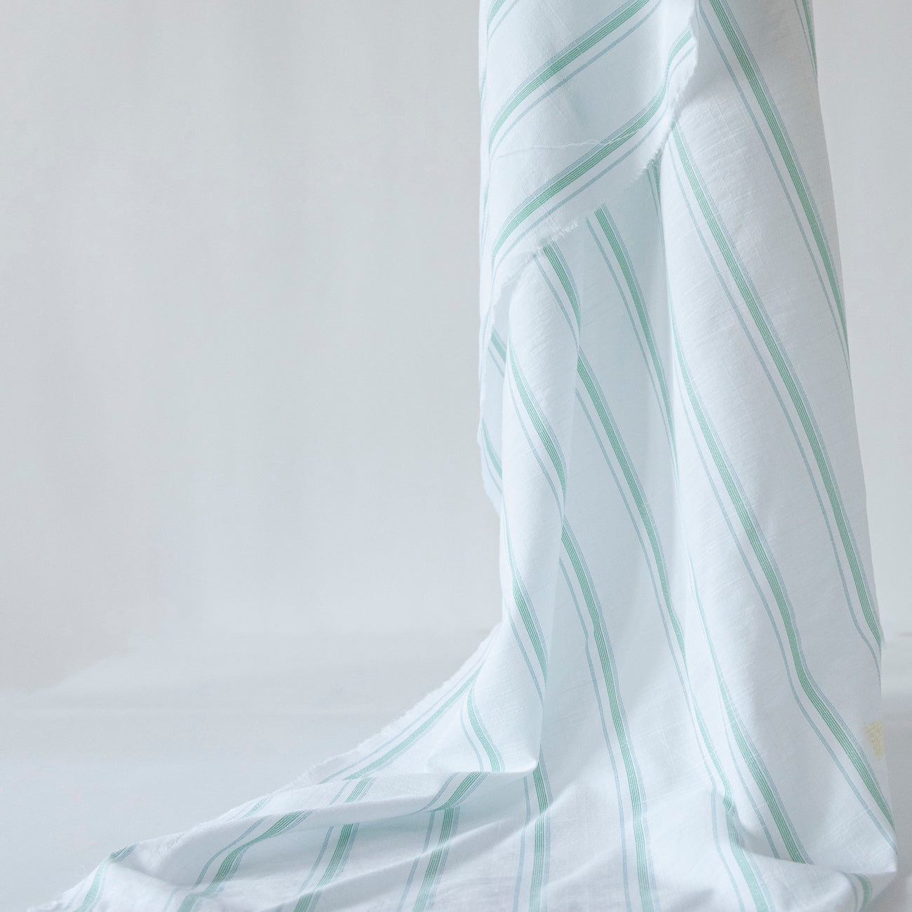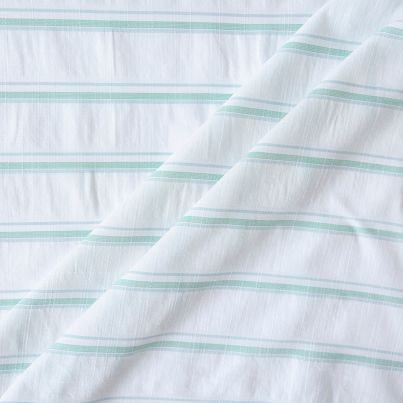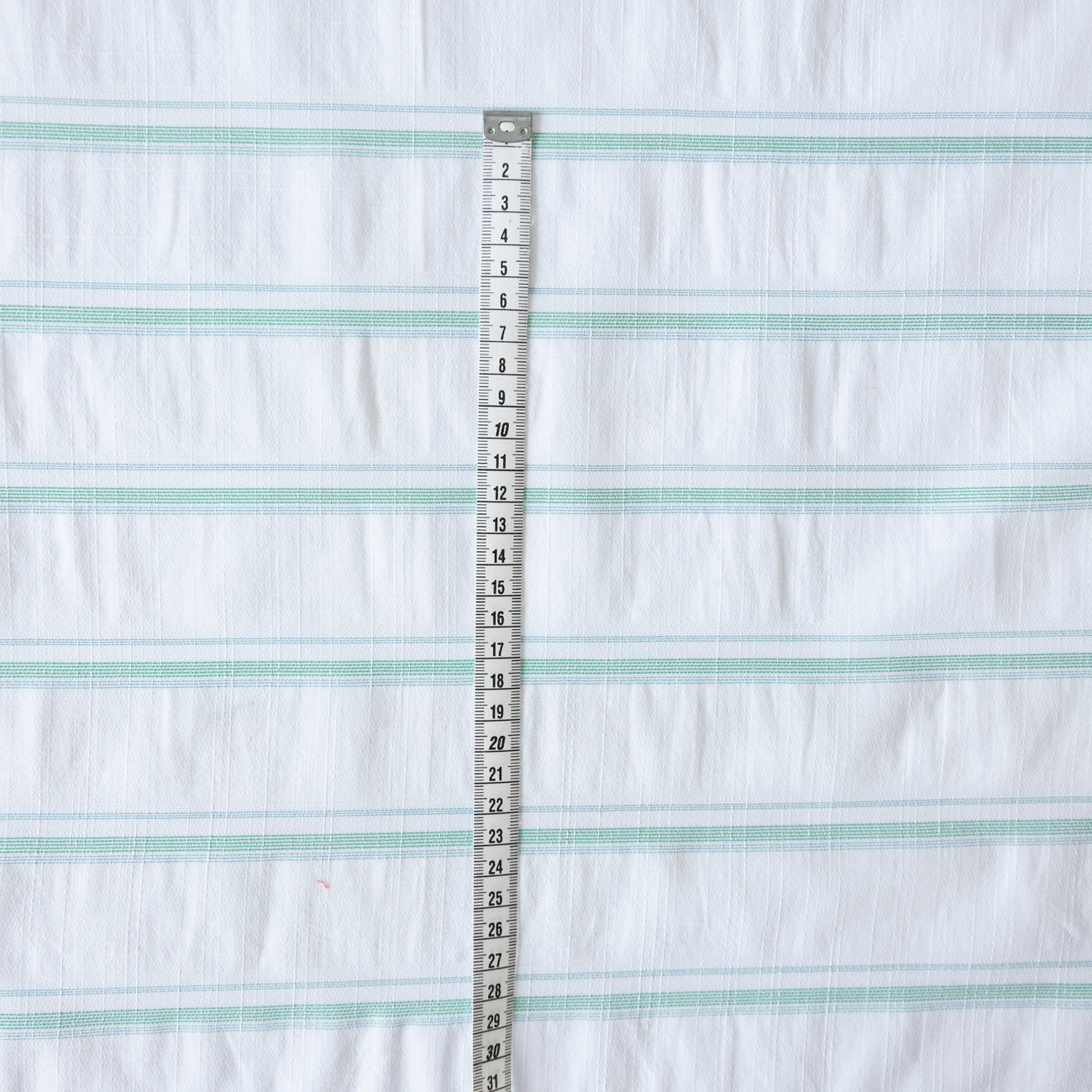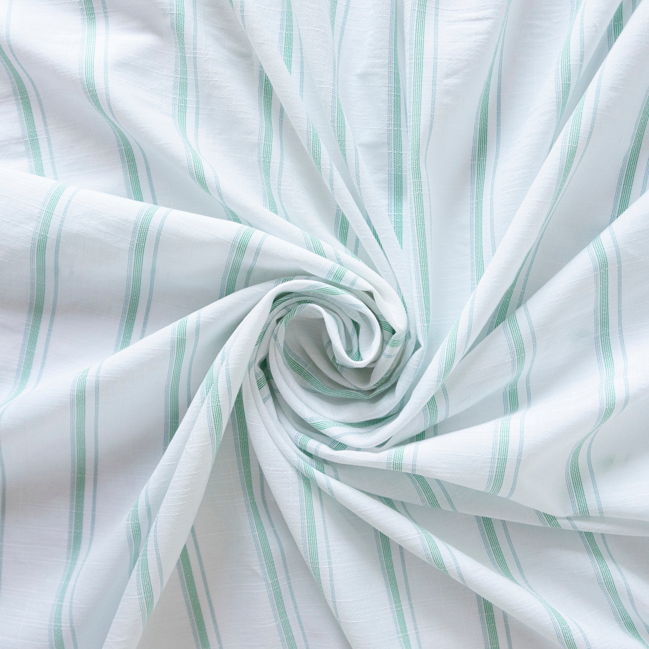 Tesătura din amestec de bumbac cu dungi verzi este plăcută la atingere, lasă pielea să respire și absoarbe umezeala. Materialul nu are elasticitate, se așază frumos, este confortabil și rezistent în timp. Datorită densității sale, își păstrează aspectul chiar și după purtări și spălări repetate.