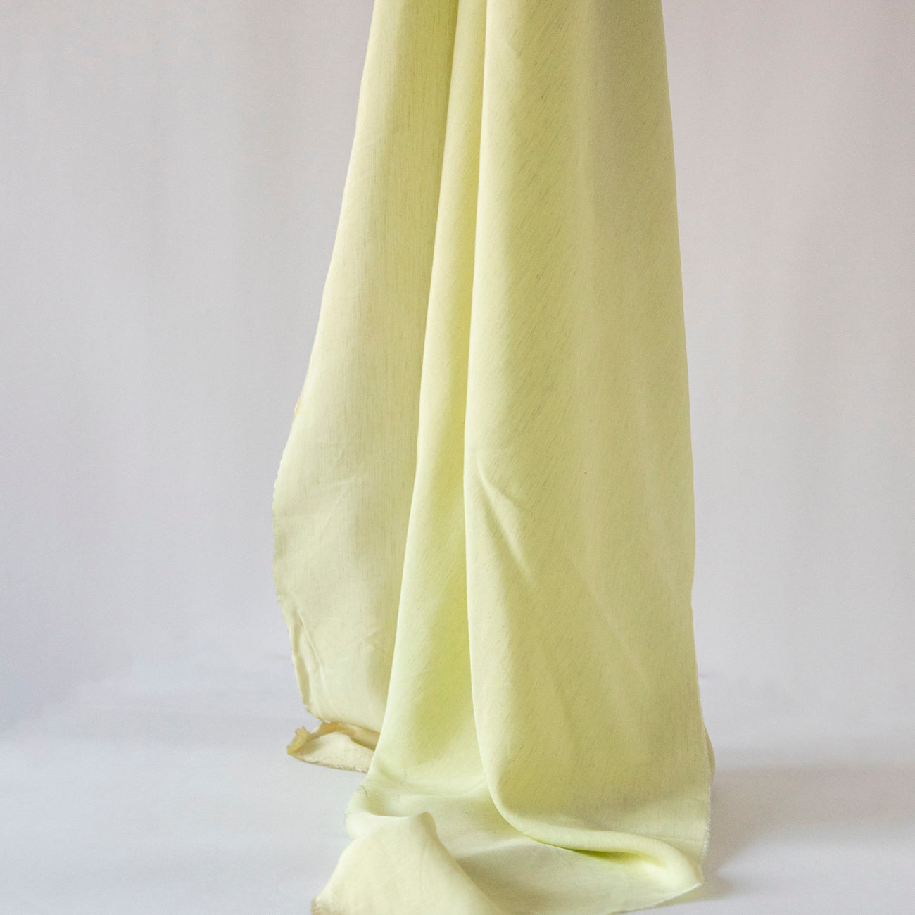 Bumbacul cu mătase galben este moale, fin la atingere și permite pielii să respire, absorbând umezeala în mod natural. Materialul, fără elasticitate, își păstrează forma și nu se deformează în timp. Compoziția de bumbac și mătase conferă tesăturii o textură elegantă și o densitate care asigură durabilitate și rezistență la uzură.