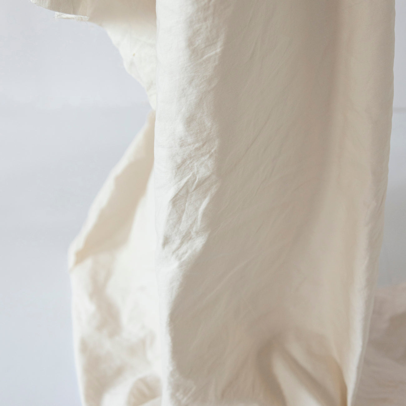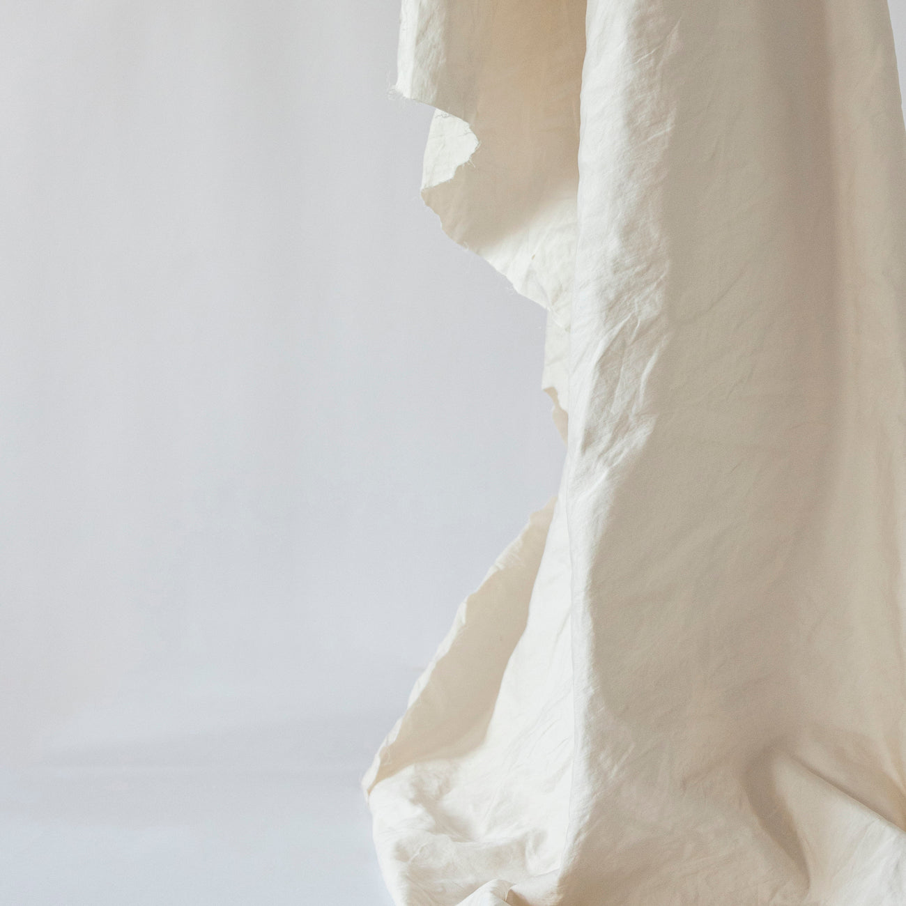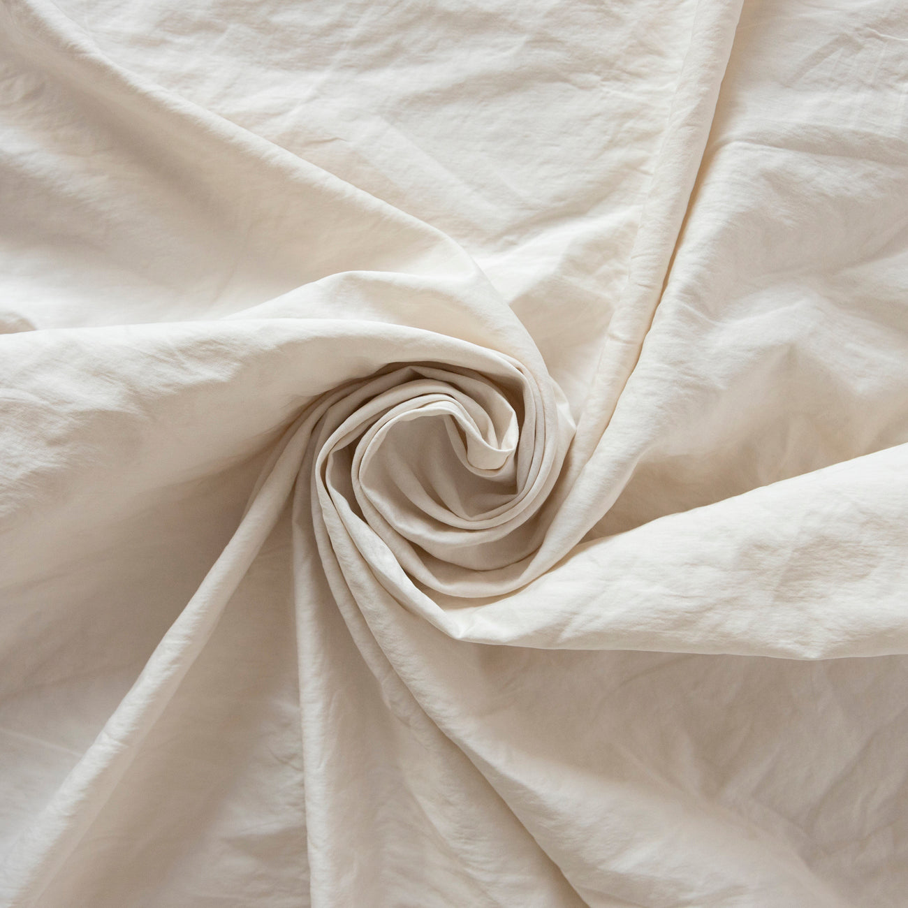 Tesătura din bumbac ivoire creponat este ușoară și plăcută la atingere, cu un aspect delicat și elegant datorat texturii creponate. Materialul nu are elasticitate, însă este comod, respirabil și absoarbe umezeala, oferind un confort sporit la purtare.