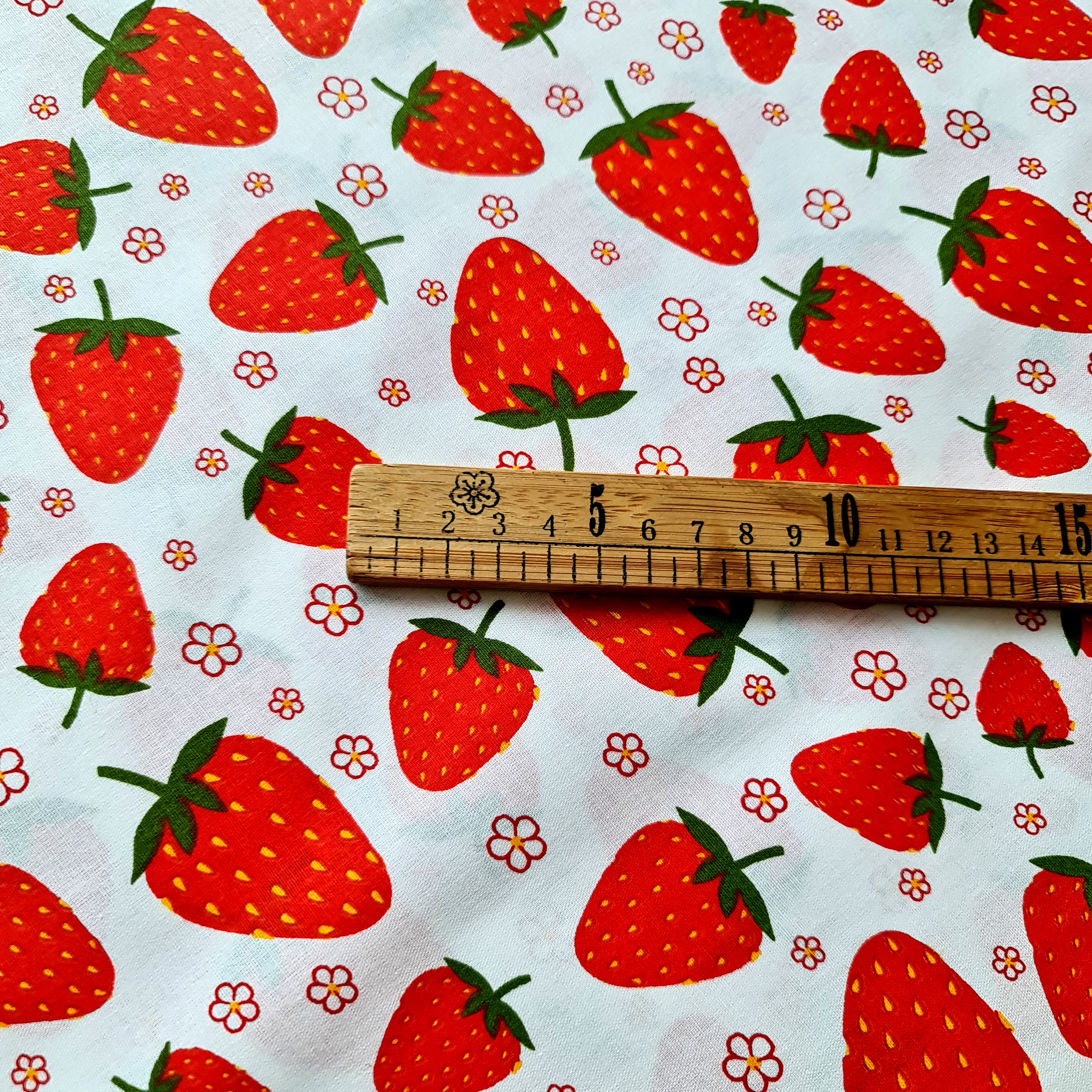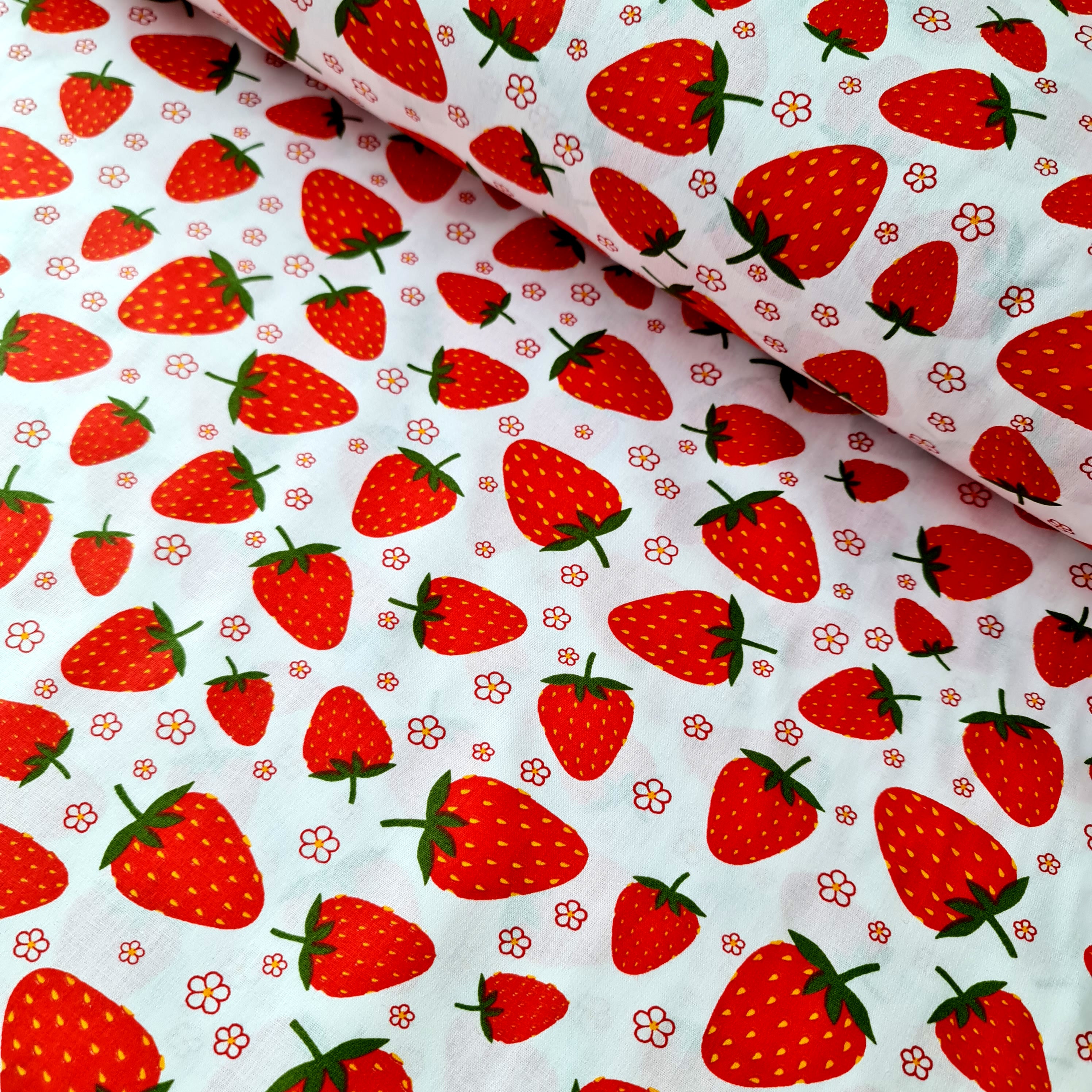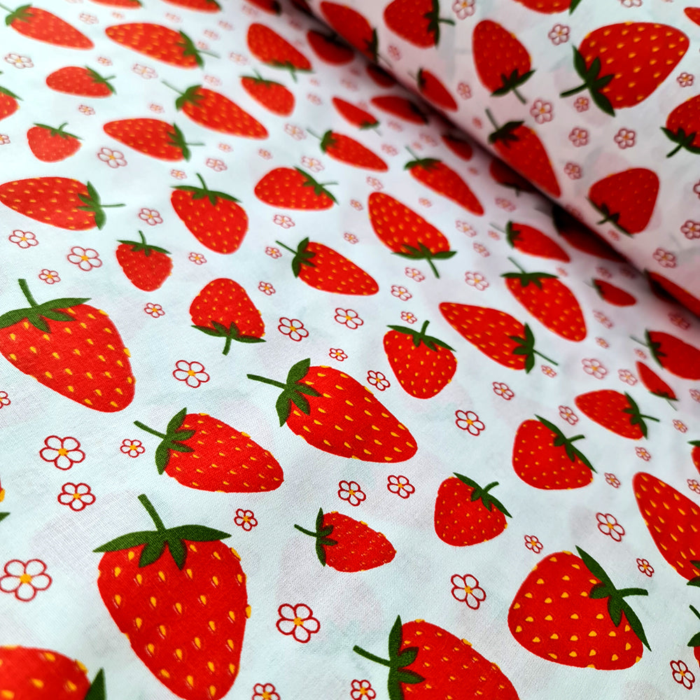 Bumbacul de lenjerie de pat Capsuni 240 cm are o textura placuta la atingere, ofera un confort termic sporit, fiind folosita cu succes in confectionarea de piese vestimentare, dar si lenjerii de pat.