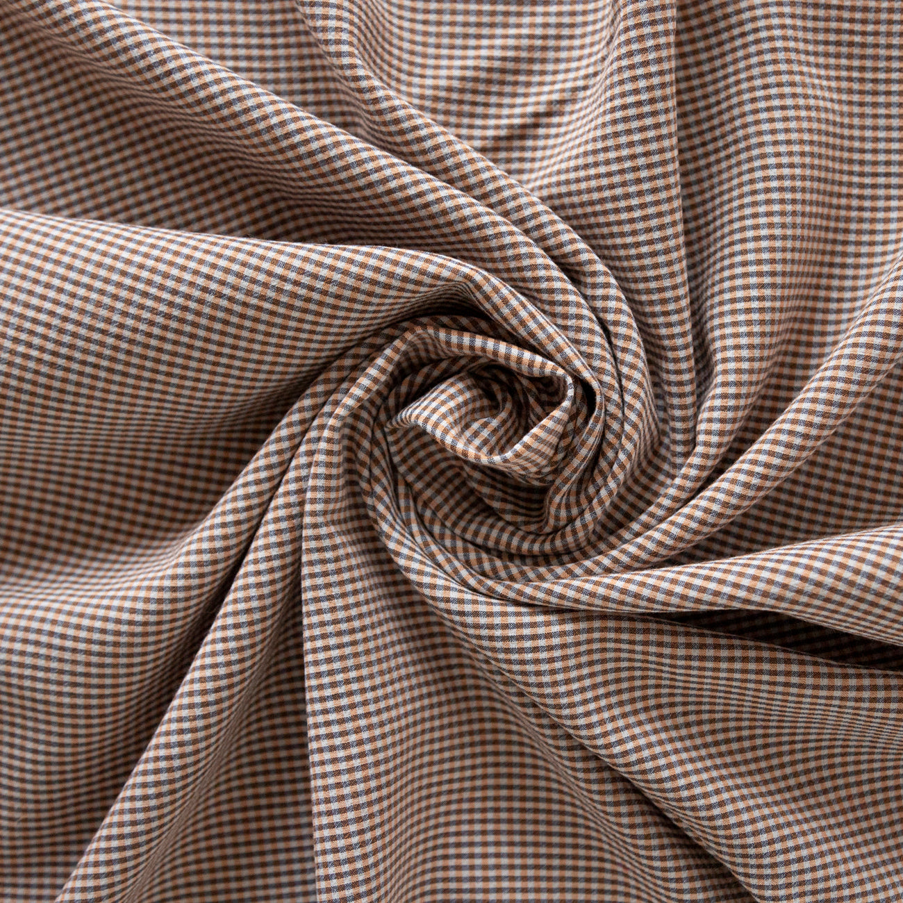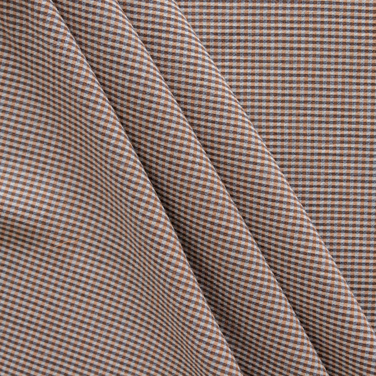 Tesătură din amestec de bumbac cu dungi în nuanțe de maro este un material fără elasticitate, plăcut la atingere și confortabil la purtare. Lasa pielea să respire și absoarbe umezeala, fiind potrivit pentru articole vestimentare de zi cu zi. Densitatea sa îi conferă rezistență și durabilitate, păstrându-și aspectul timp îndelungat.