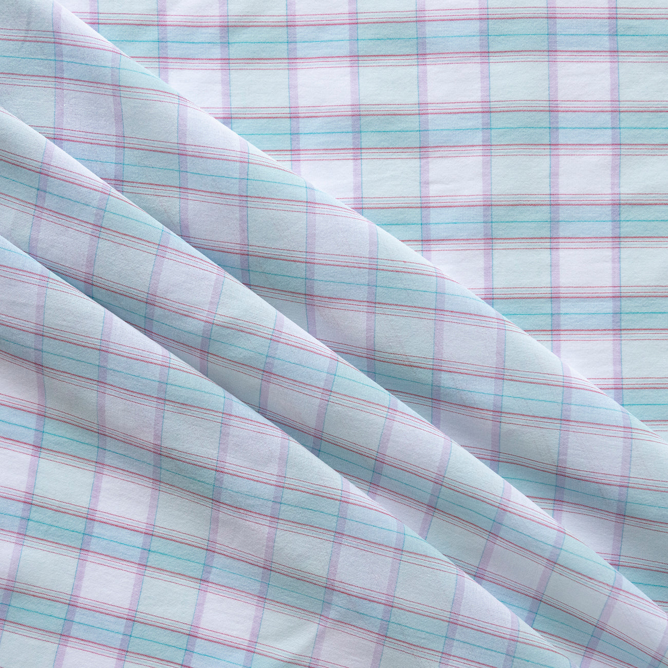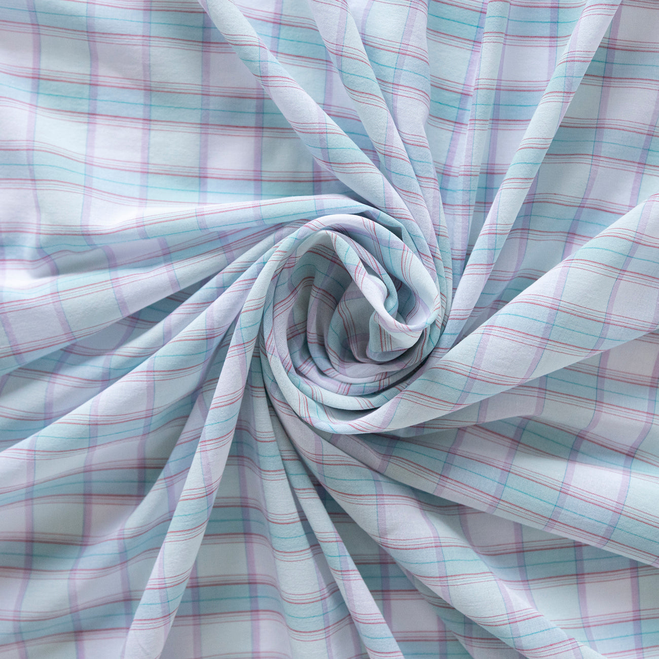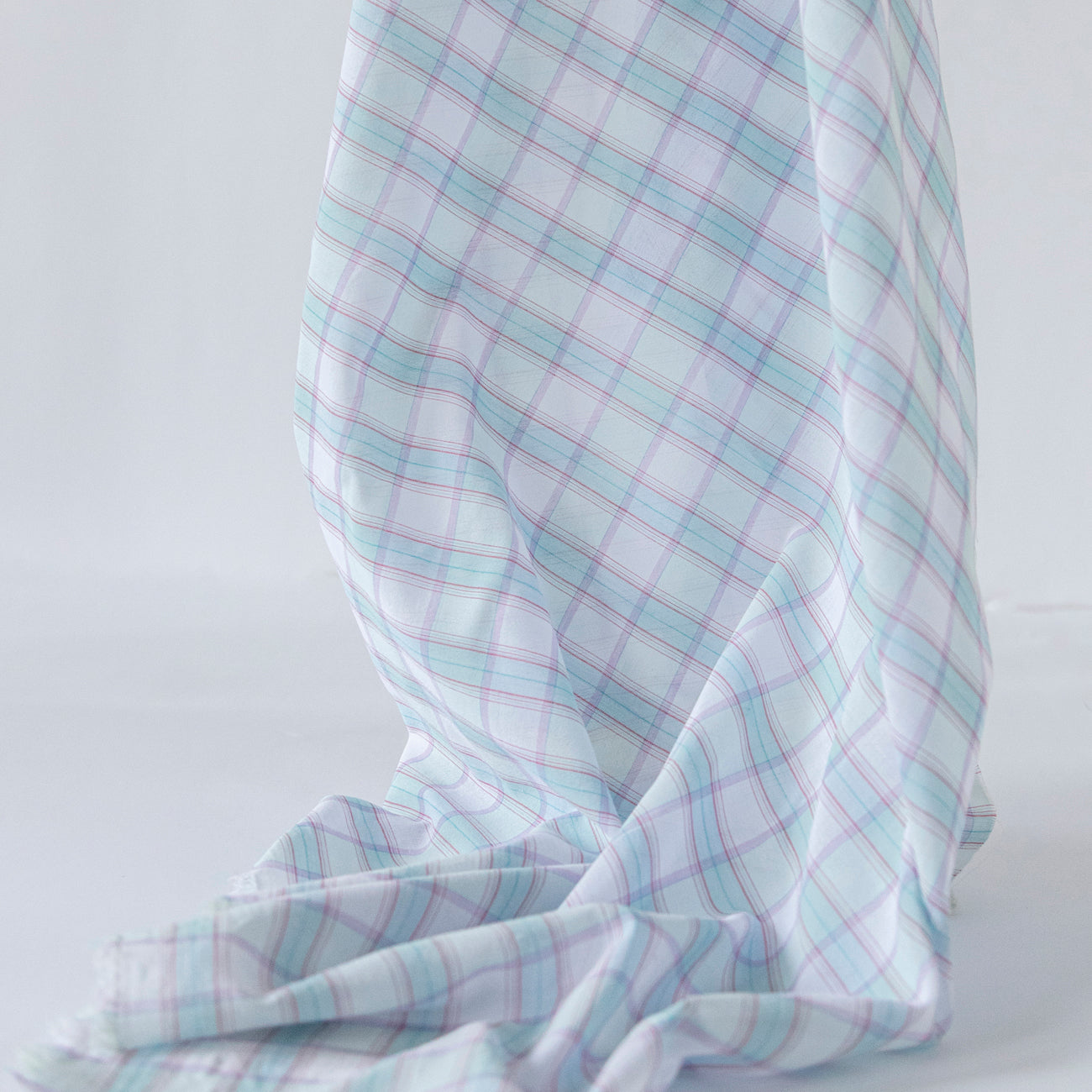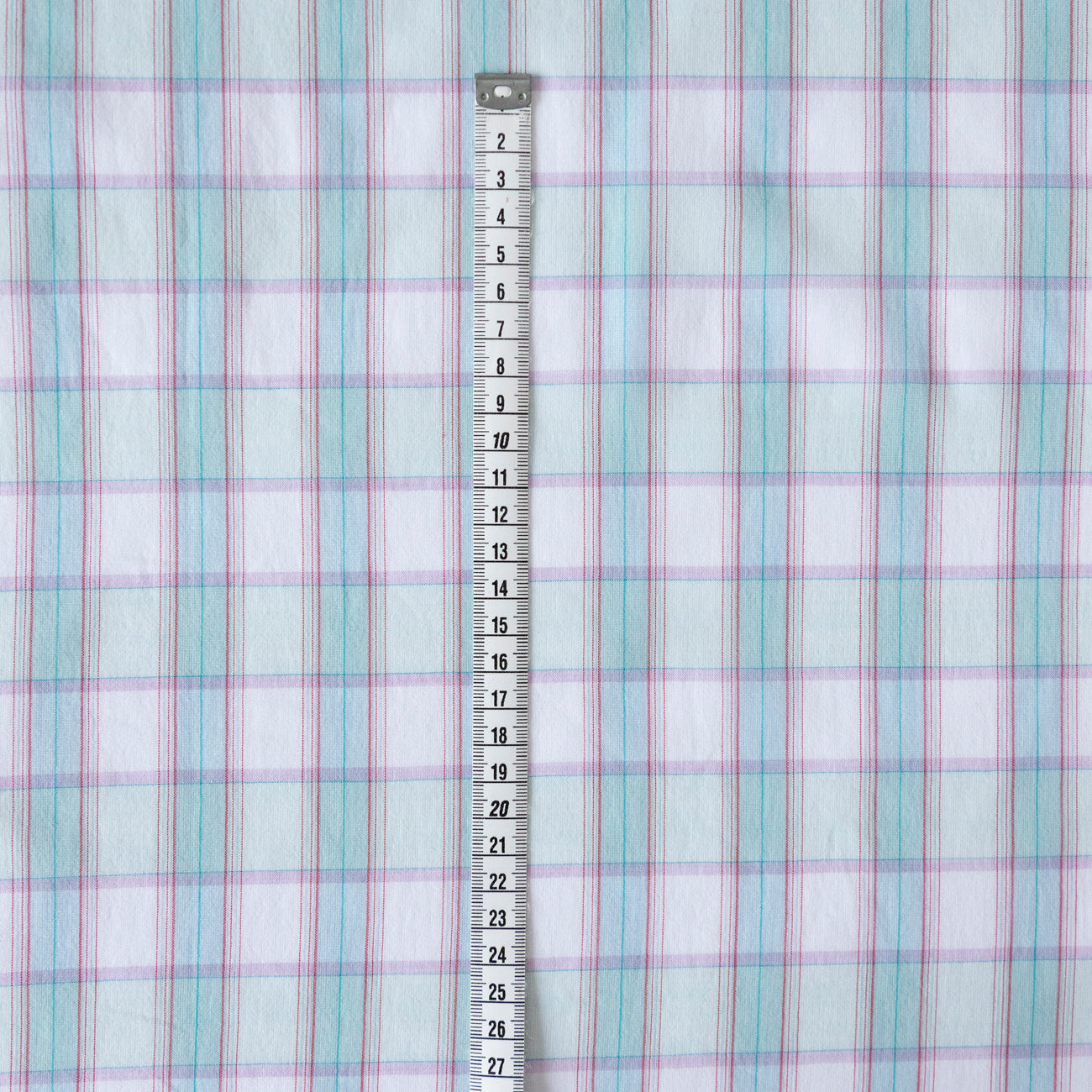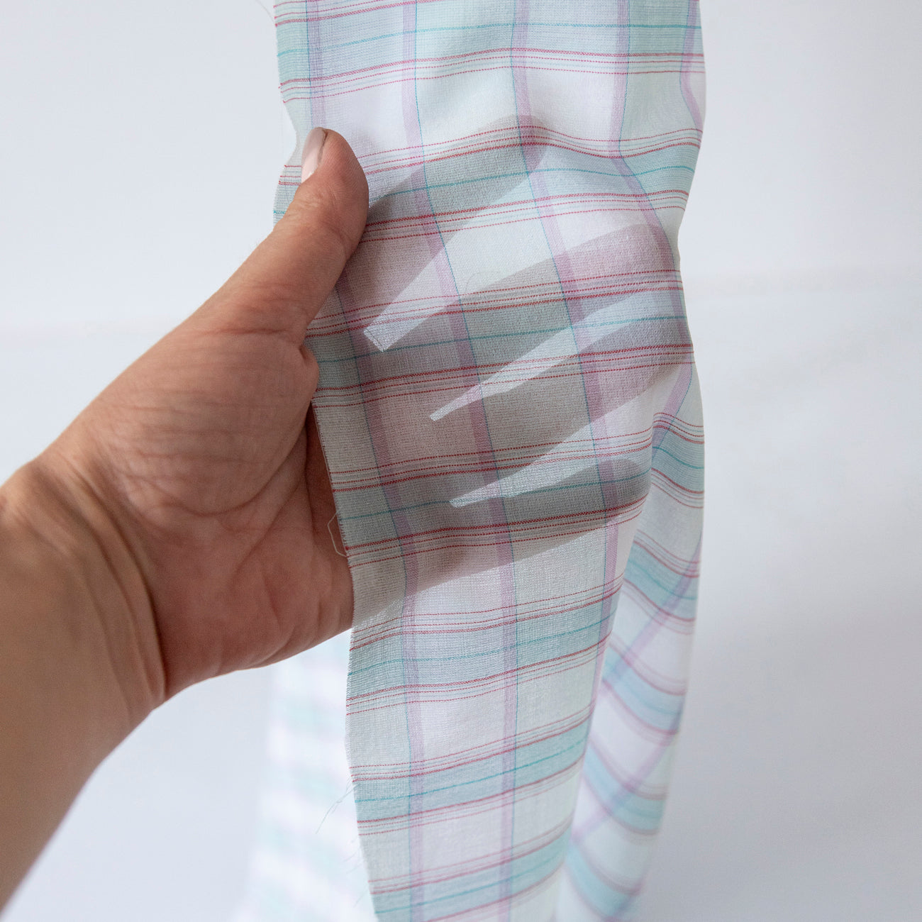 Bumbacul subțire în carouri este un material ușor, plăcut la atingere și prietenos cu pielea. Fiind realizat dintr-un amestec de bumbac, lasă pielea să respire, absoarbe umezeala și asigură confort pe parcursul purtării. Materialul nu are elasticitate, ceea ce îi conferă stabilitate și o ținută elegantă în timp.