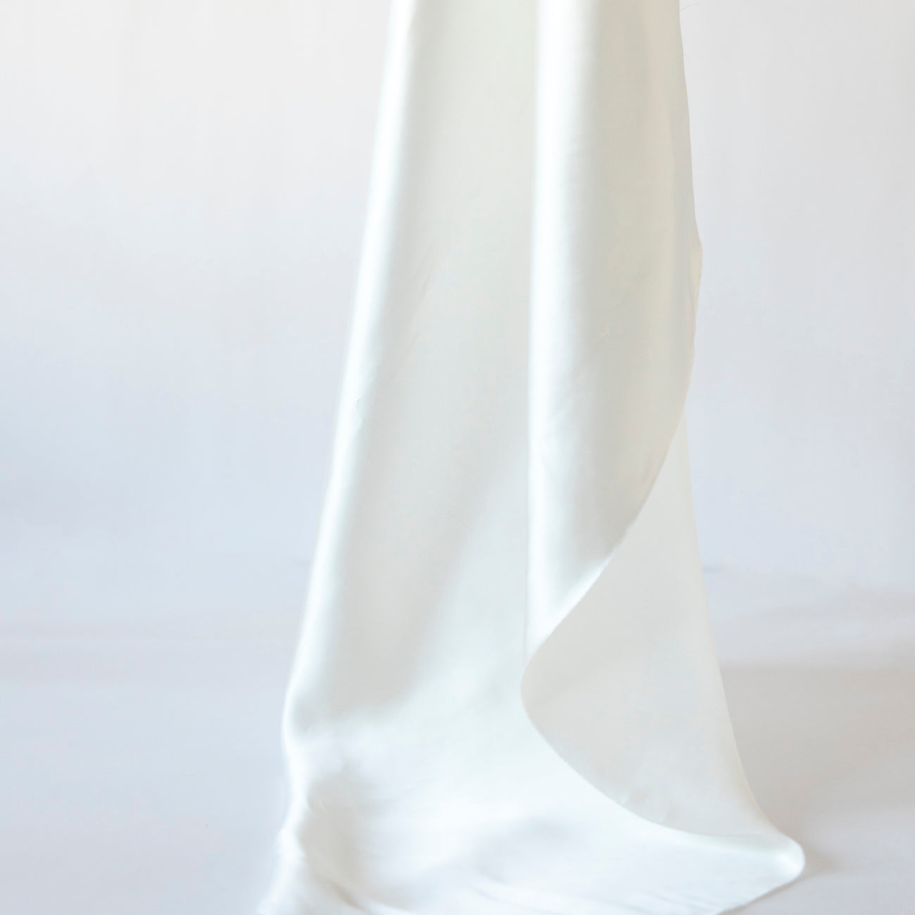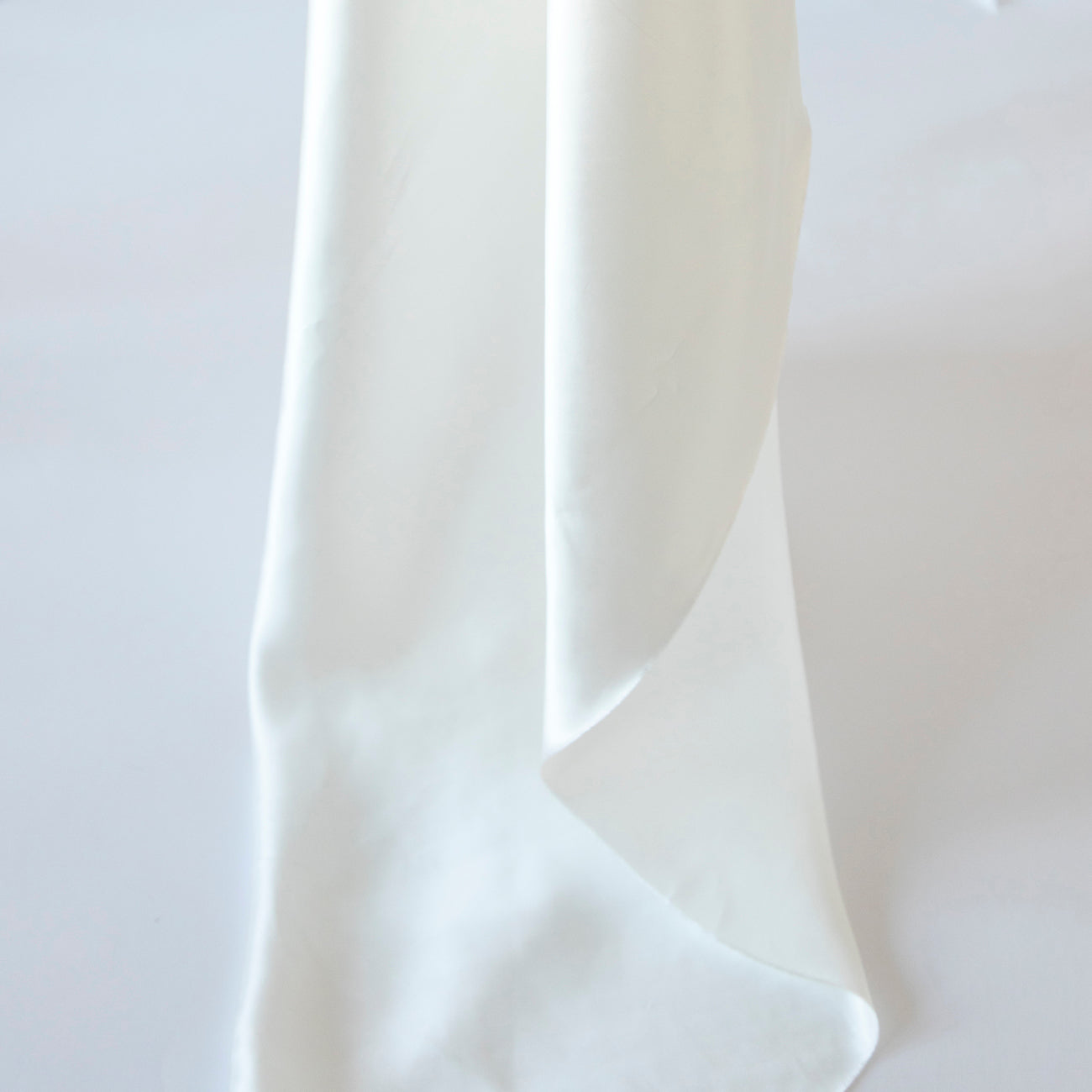 O țesătură elegantă, fără elasticitate, cu o combinație fină între mătase naturală și țesătură sintetică. Materialul este plăcut la atingere, are o textură rafinată și oferă o strălucire subtilă care îi conferă un aspect sofisticat. Densitatea sa asigură rezistență și durabilitate, păstrându-și forma și frumusețea chiar și după multiple purtări.
