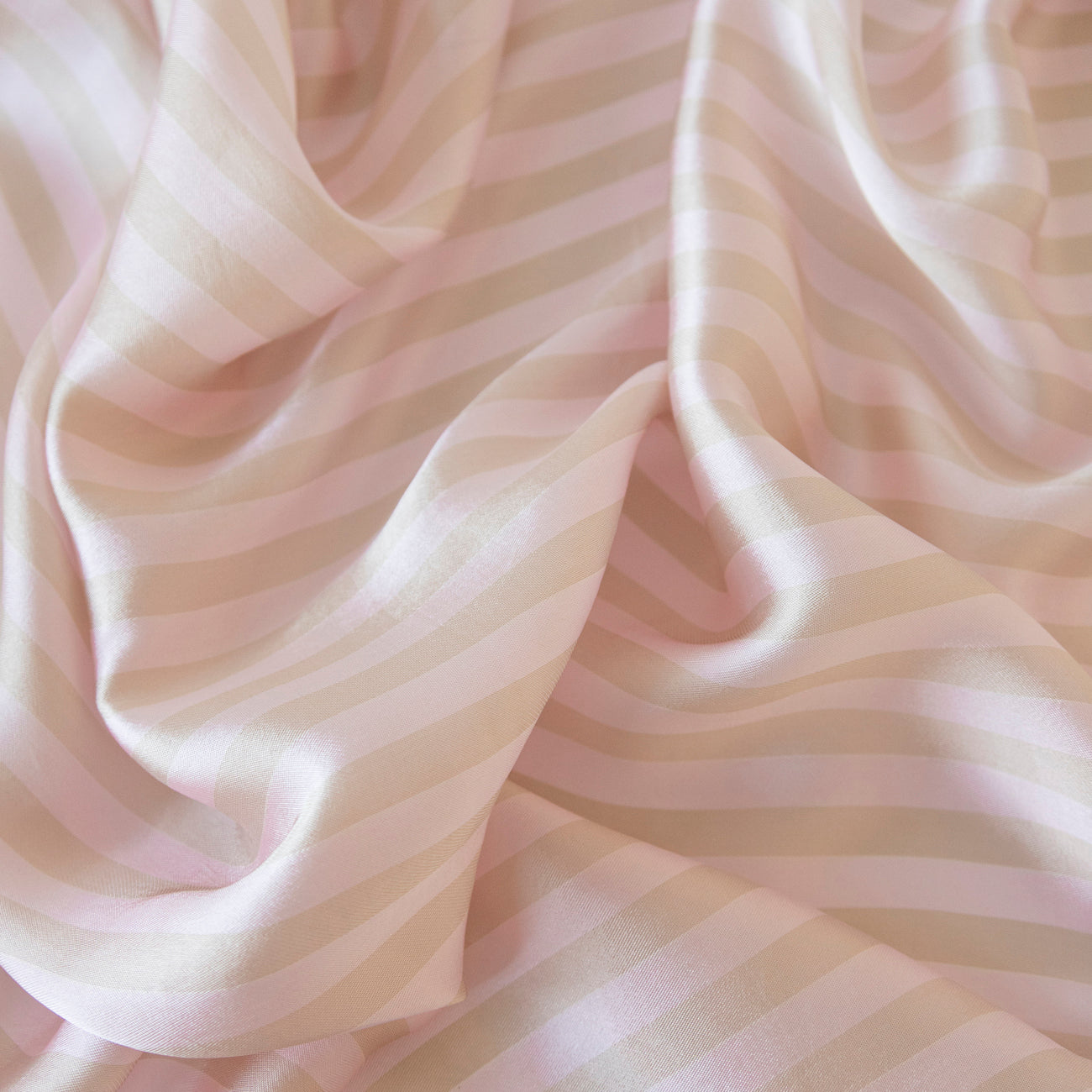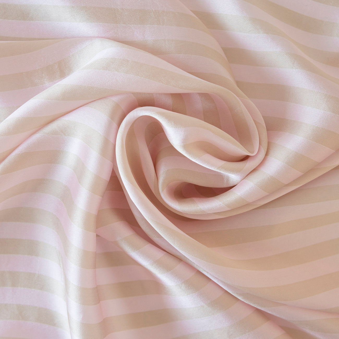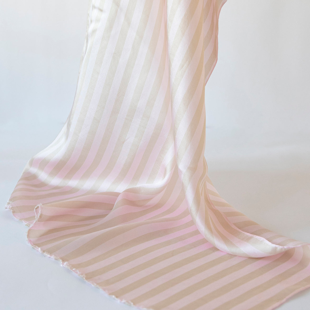 Material fin, elegant, fără elasticitate, realizat dintr-un amestec de mătase. Țesătura este plăcută la atingere, ușoară și delicată, oferind o senzație de confort și rafinament. Materialul se așază frumos, conferă fluiditate și un aspect sofisticat pieselor vestimentare.