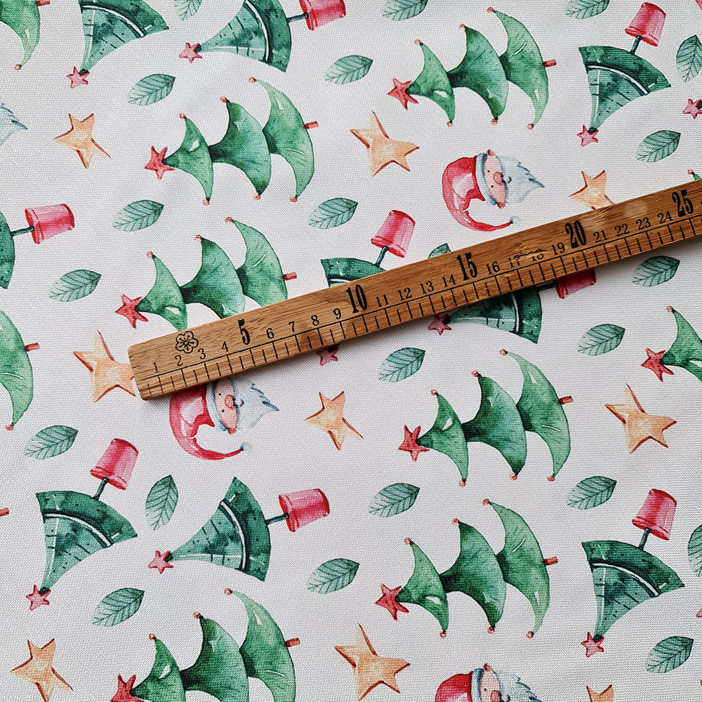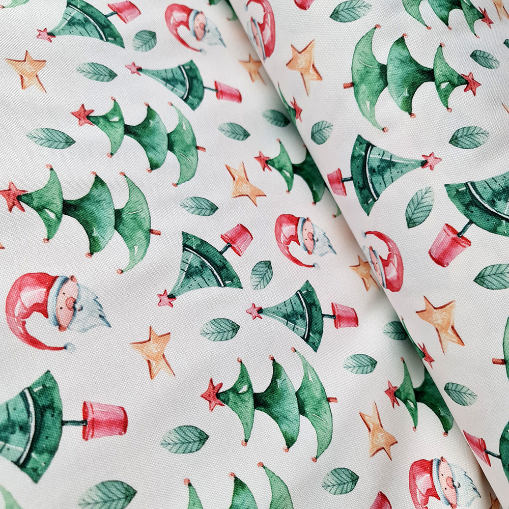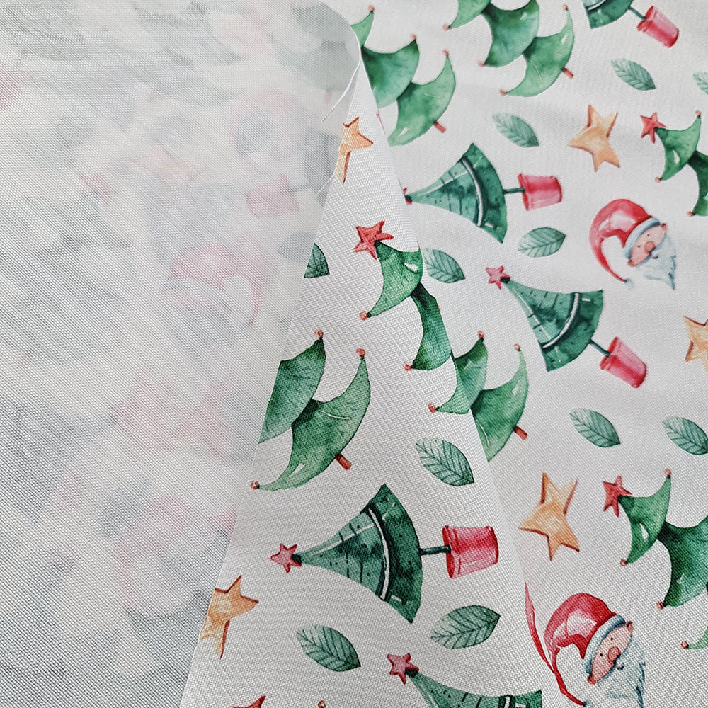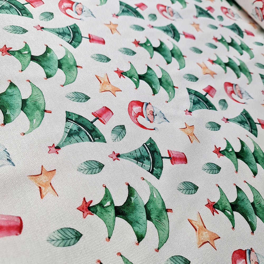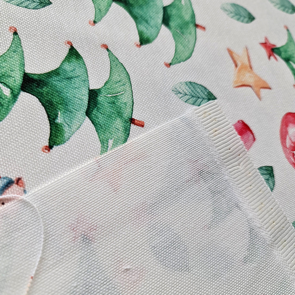 Față de masă impermeabilă de Crăciun, realizată dintr-un material ce are in compozitie bumbac si poliester rezistent de aproximativ 222 g/m², perfectă pentru a proteja masa în timpul meselor festive. Țesătura are un strat impermeabil care împiedică pătrunderea lichidelor, astfel că petele de vin, suc sau apă se șterg ușor cu o lavetă umedă. Materialul este plăcut la atingere, stă frumos întins pe masă și nu se șifonează ușor, fiind ideal atât pentru uz casnic, cât și pentru restaurante sau evenimente.