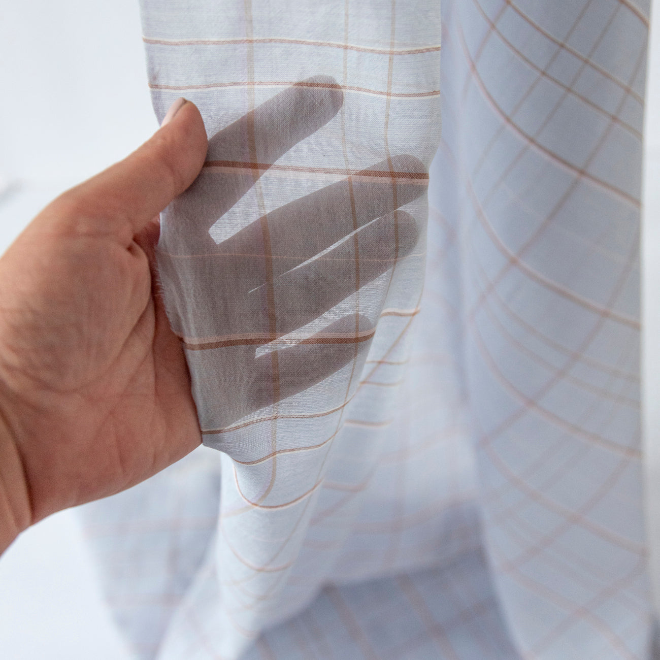 Țesătura din pânză bumbac bleu cu carouri este moale, respirabilă și absoarbe umezeala, oferind confort pe tot parcursul purtării. Materialul, fără elasticitate, își păstrează forma și nu se scamosează, asigurând rezistență și durabilitate în timp.