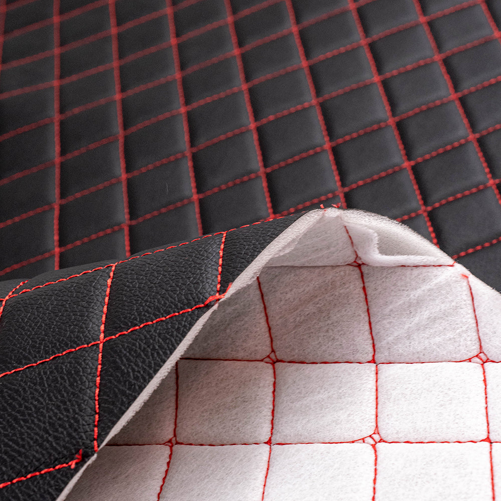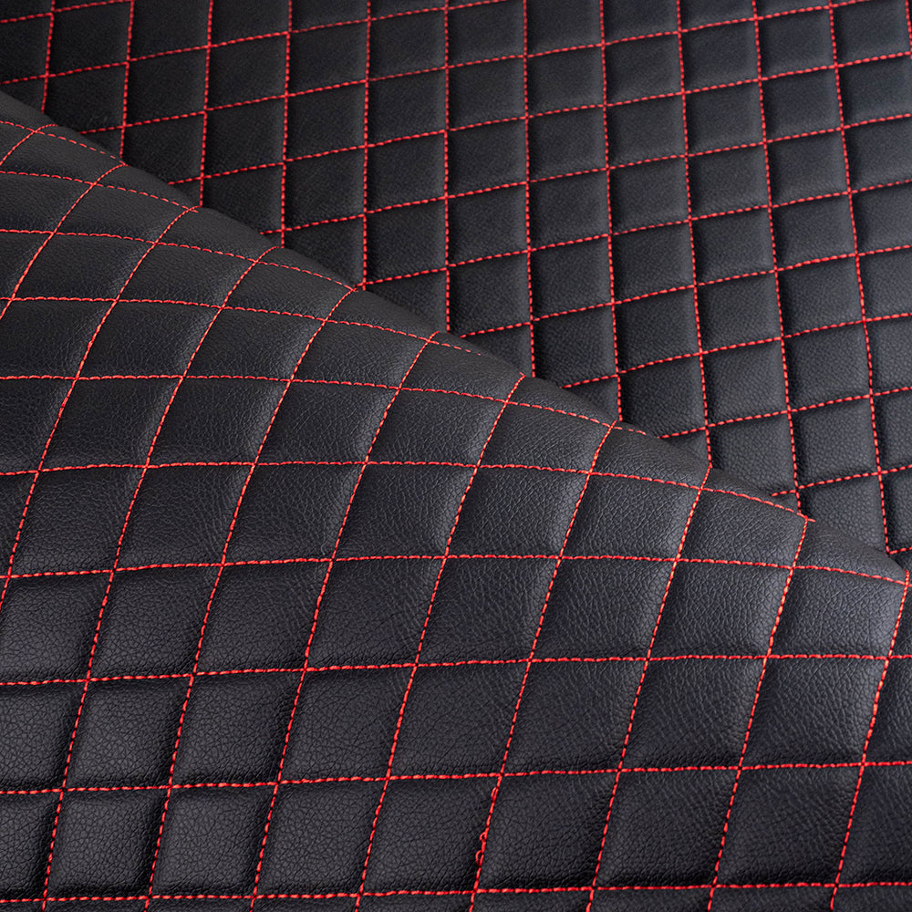 Piele Ecologică Neagră cu Romburi și Cusătură rosie