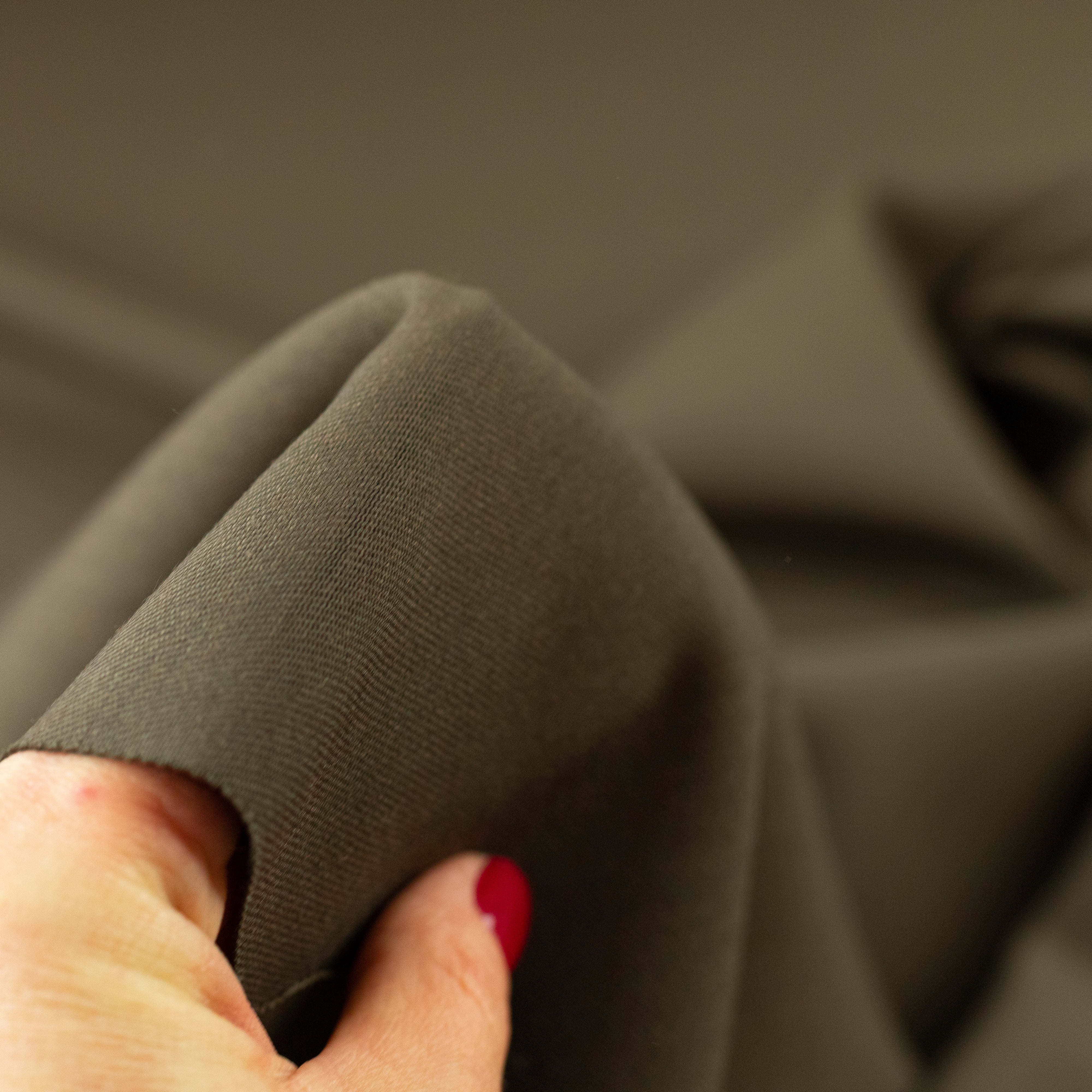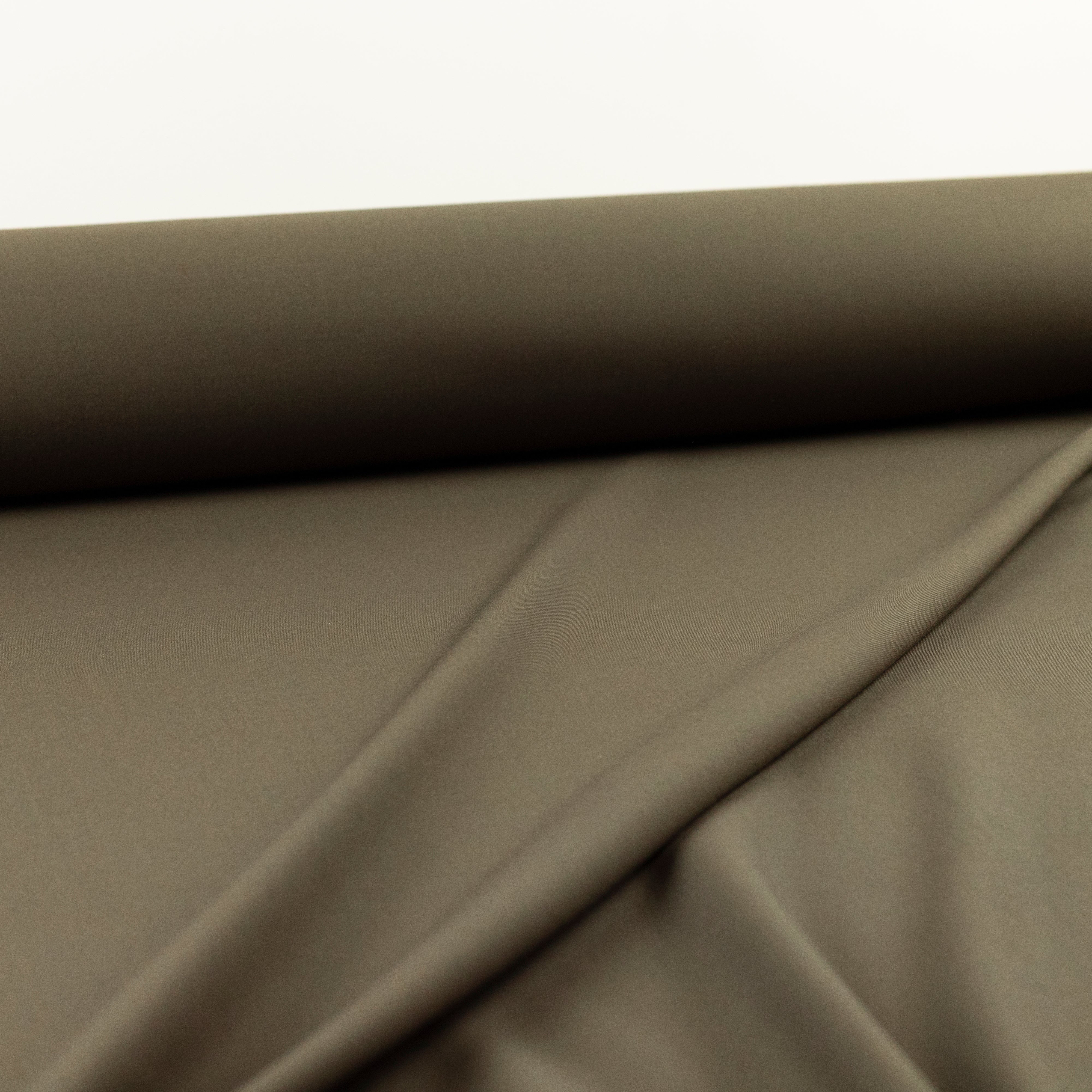 Stofa Costume Kaky este o țesătură delicată, fără elasticitate, ideală pentru confecționarea de fuste, bluze, pantaloni, costume și sacouri. Materialul combină textura rafinată a mătăsii cu rezistența unei stofe de calitate, oferind o cădere elegantă și un aspect sofisticat.