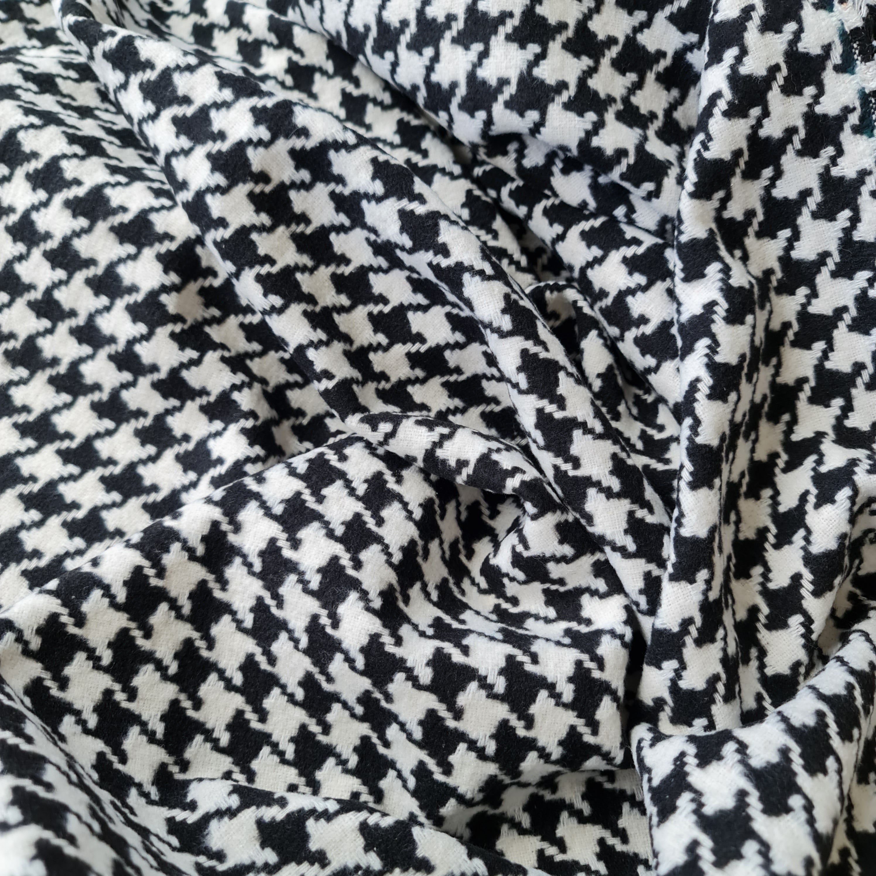 Modelul picior de cocoș, cunoscut pentru eleganța sa clasică și versatilitatea în design, face ca această stofa palton să fie ideală pentru confecționarea de paltoane, sacouri sau alte piese vestimentare cu un aer rafinat și distinct.