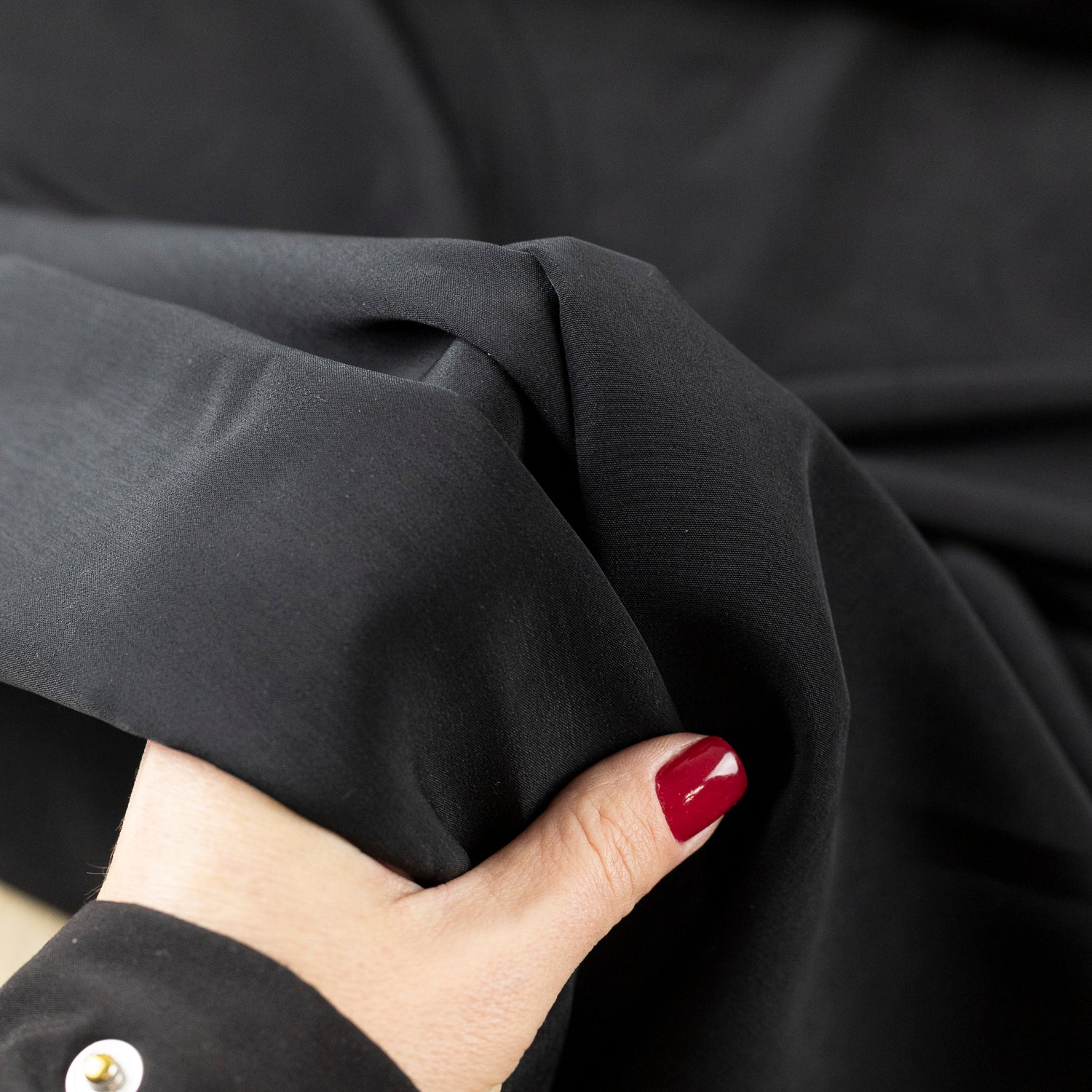 Materialul combină textura rafinată a mătăsii cu rezistența unei stofe de calitate, oferind o cădere buna și un aspect sofisticat.